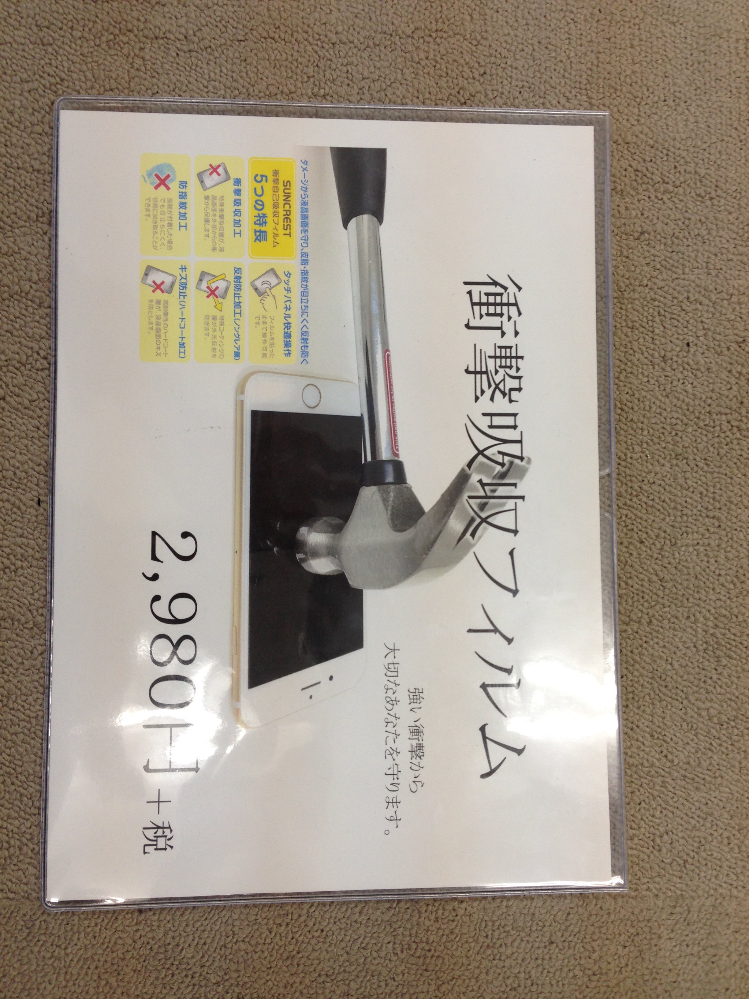 女性の方や落とした事がない!というような方にオススメの保護フィルムです!