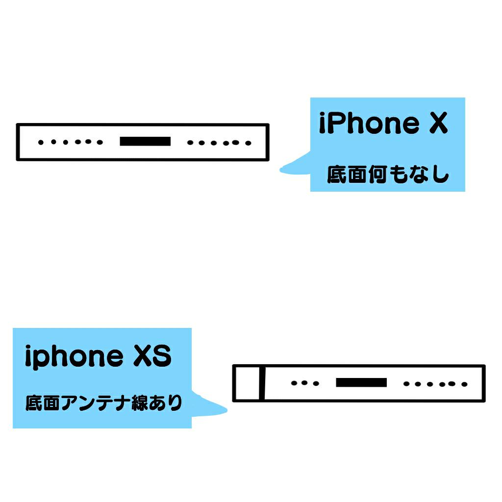 XS→ホームボタンが無く、底面に線が一本入っています。カメラの上の縁の部分にも線が入っています。