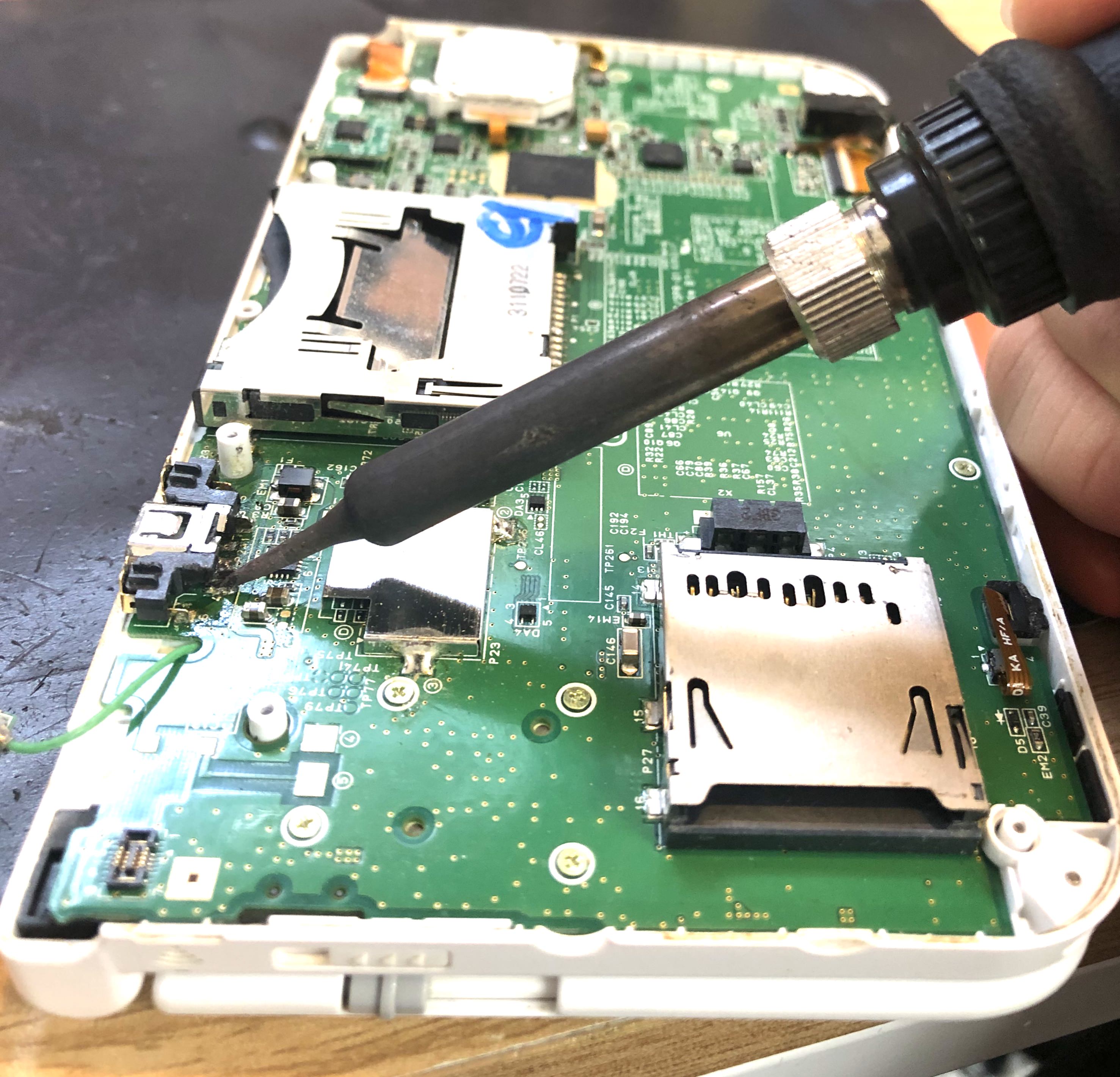 3DSLLの充電口修理の作業は半田ごてで行います。