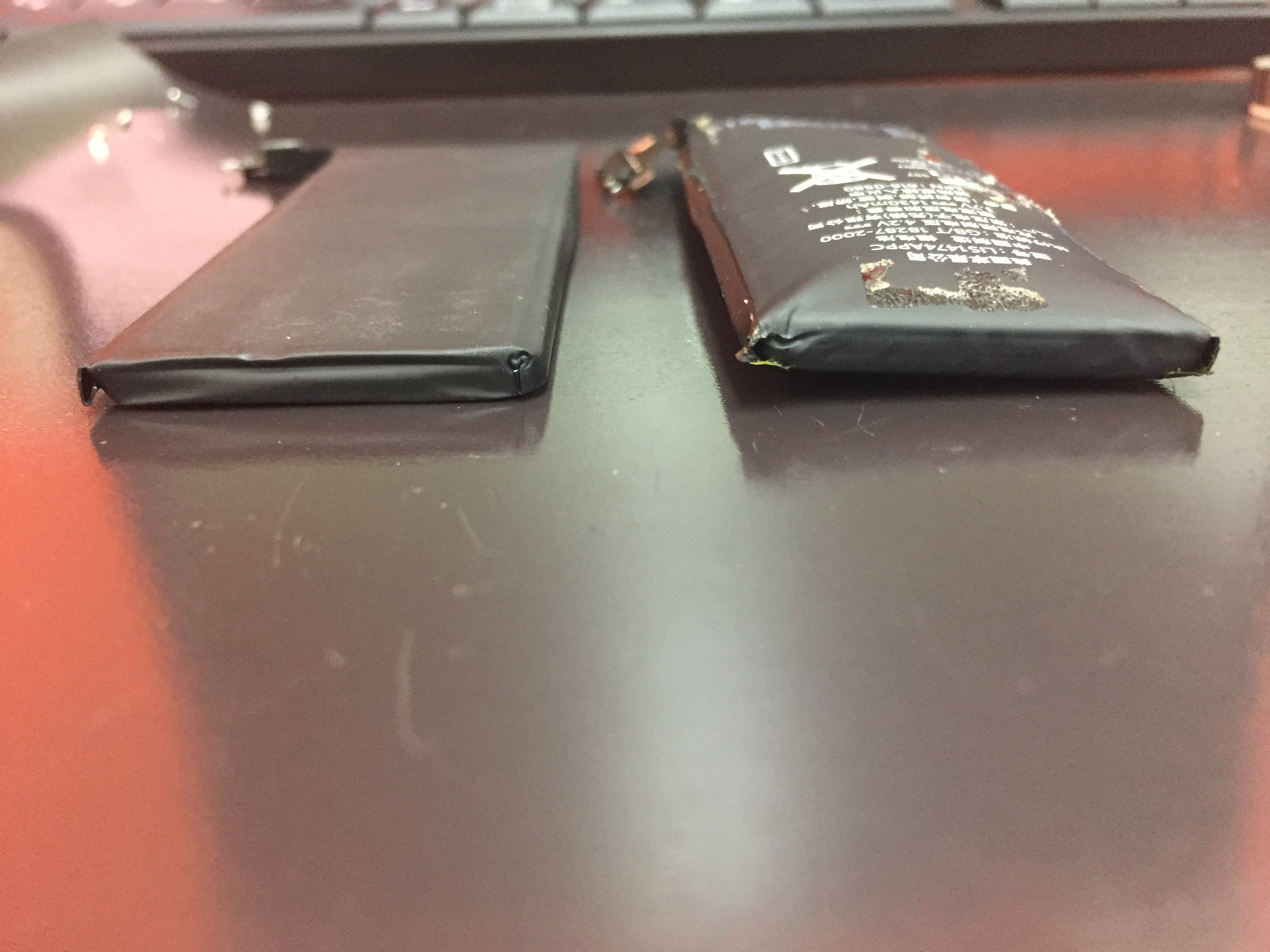 画像を見ていただく通り膨張したバッテリーとの差は歴然です!!