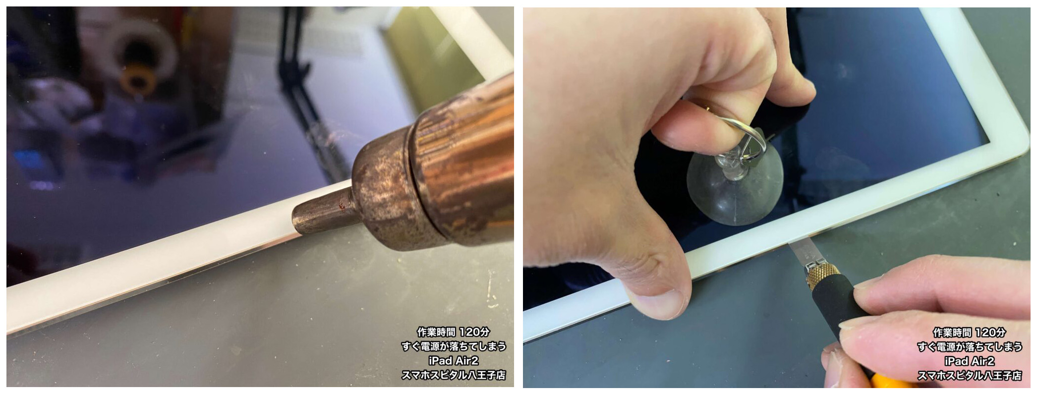 例えば、iPadのバッテリー交換にはフロントパネルを取り外す必要がありますが、フロントパネルは強力な接着テープで圧着されています。これをヒートガンで適度に熱した上で慎重に開けますが、不慣れだと画面や内部の破損を招く恐れがあります。そして仮に分解できても、今度は元通り組み立てるのが難しいという問題もあります。