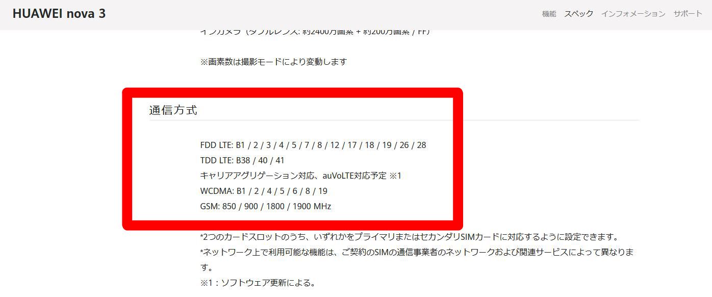 ↑HUAWEI nova 3は日本でも発売されているので主要な回線全てに対応しています。