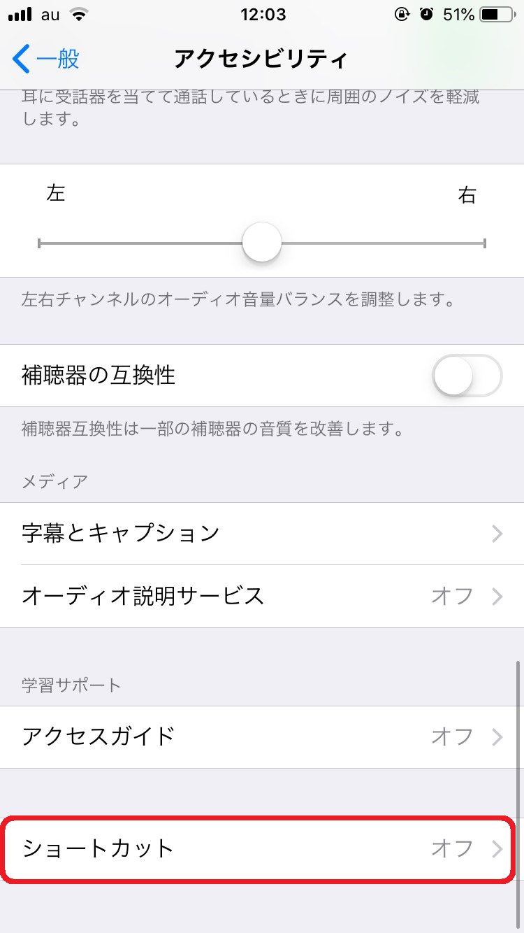 設定アプリからオンにすることで様々な機能をショートカットして使うことができます!