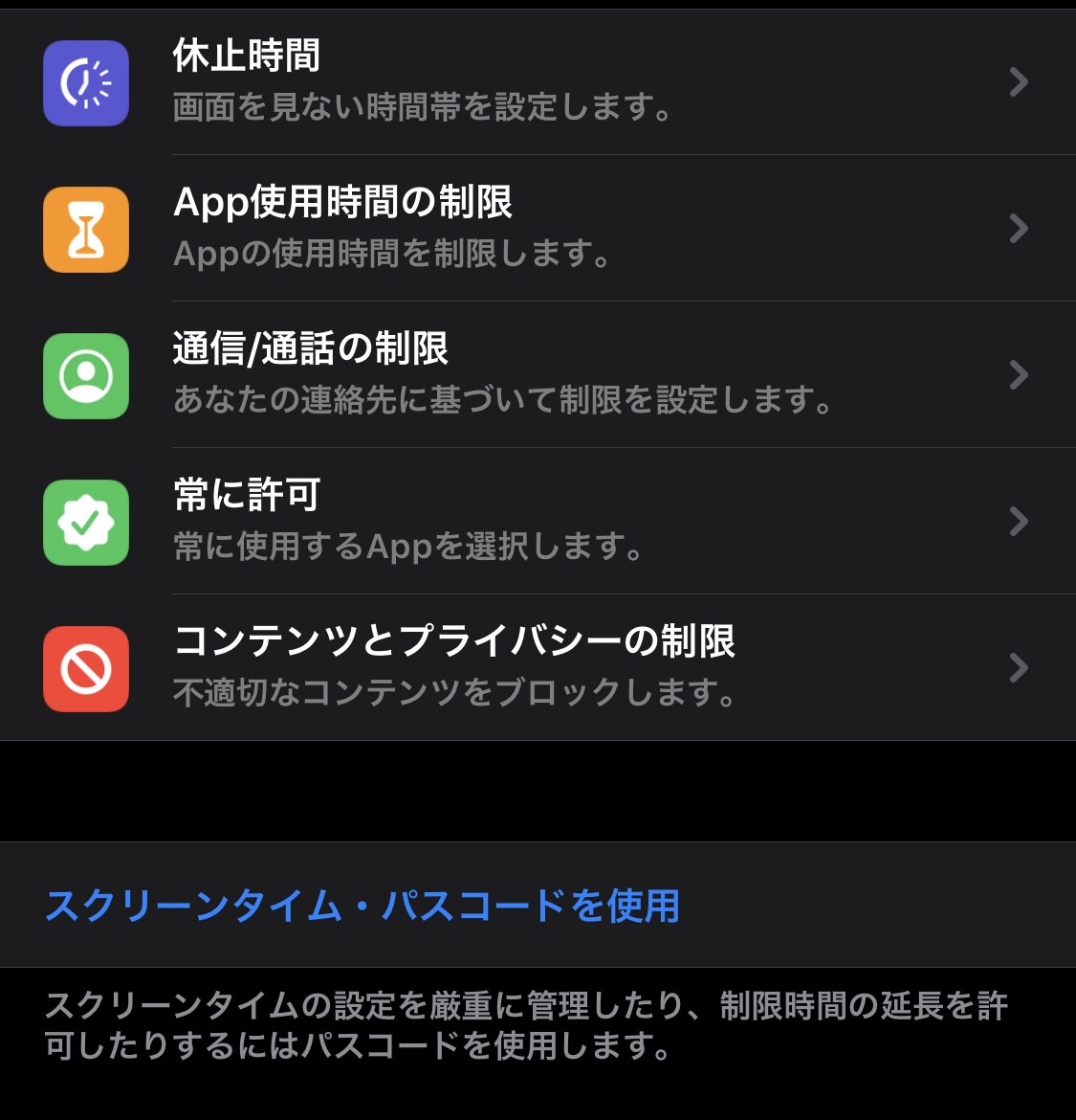 この時スクリーンタイムがオフになっている時はオンにしてください。
