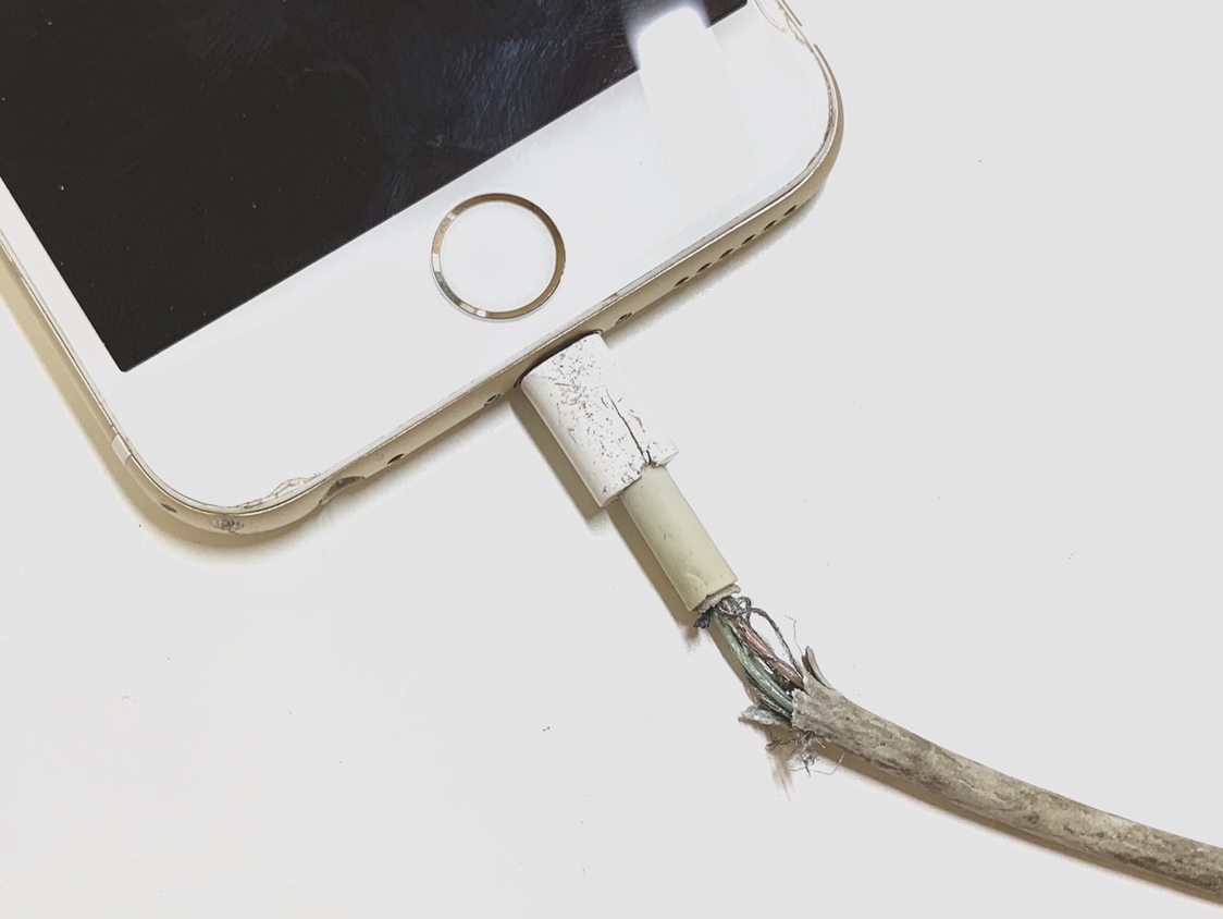 iPhoneの充電ケーブルは性質上断線しやすく、負荷をかけるとすぐに千切れてしまいます。