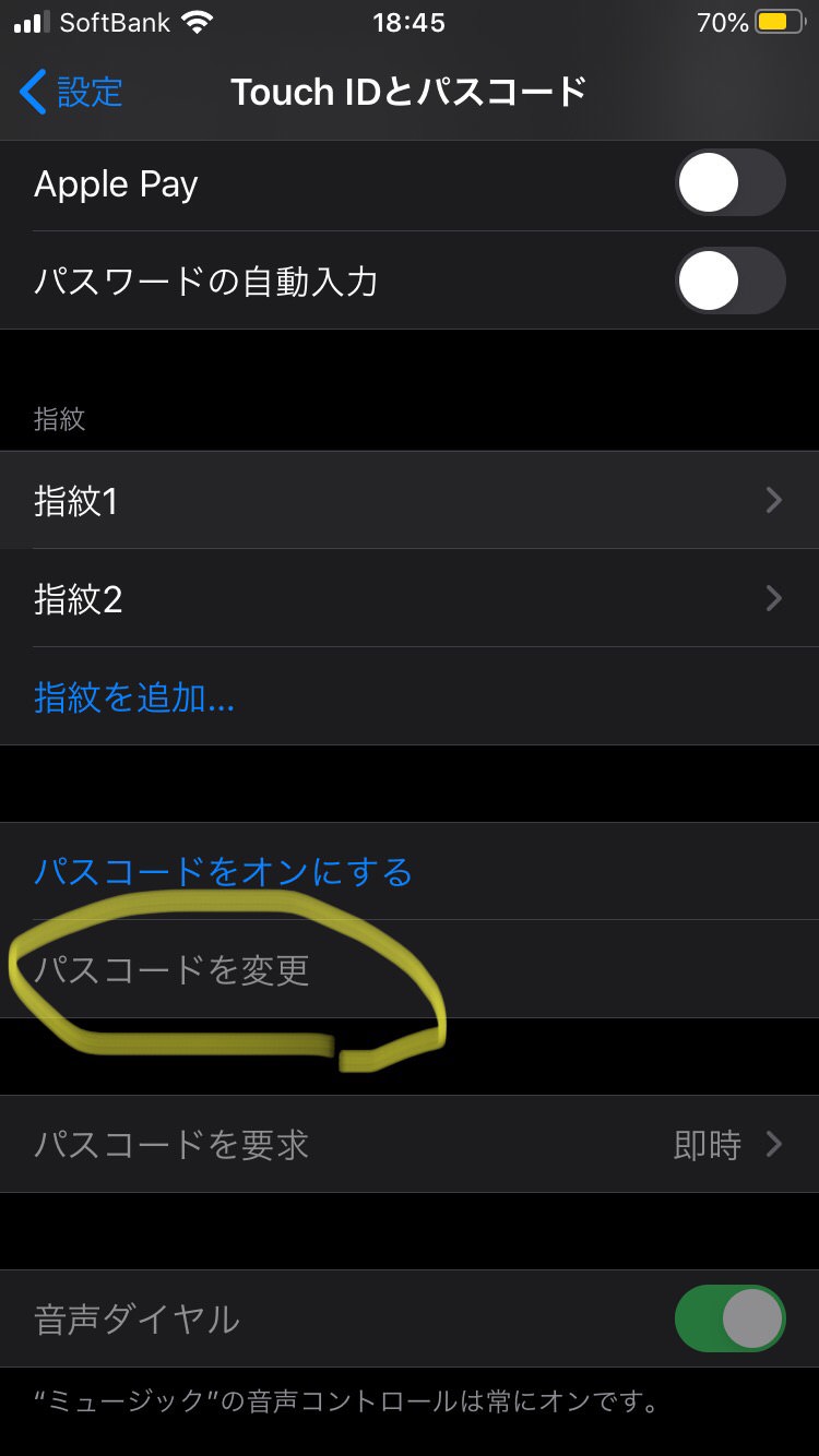 そして再度古いパスコードを要求されるので、今まで設定していた