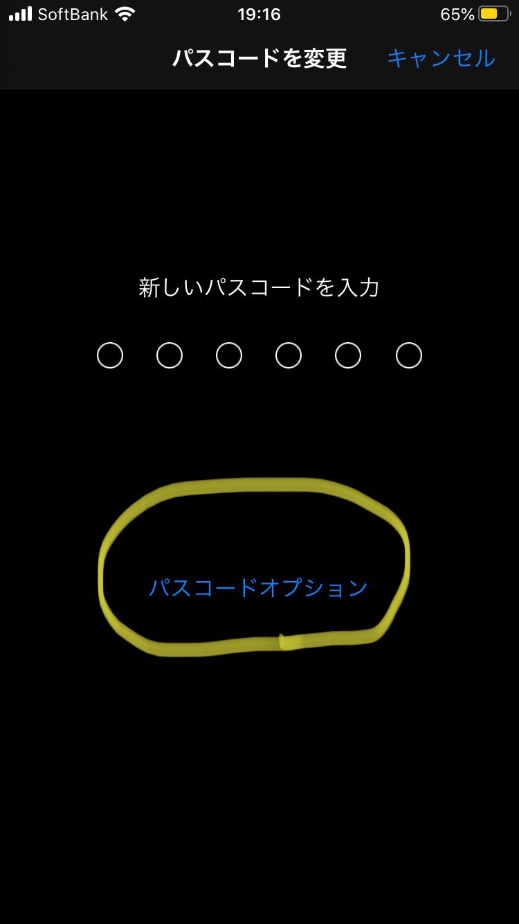 【パスコードオプション】をタップしましょう。