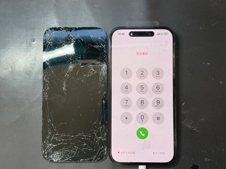 実績1.車に轢かれたiPhone14Proの画面交換修理