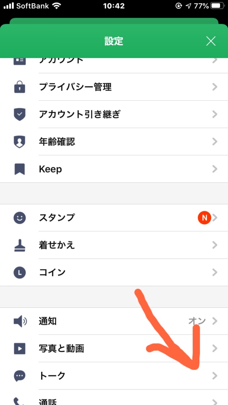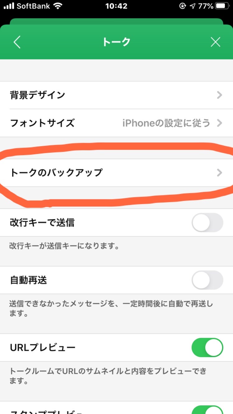 トークを押すと、次にトークのバックアップの項目が出てきます。