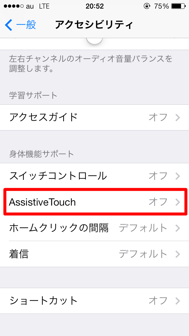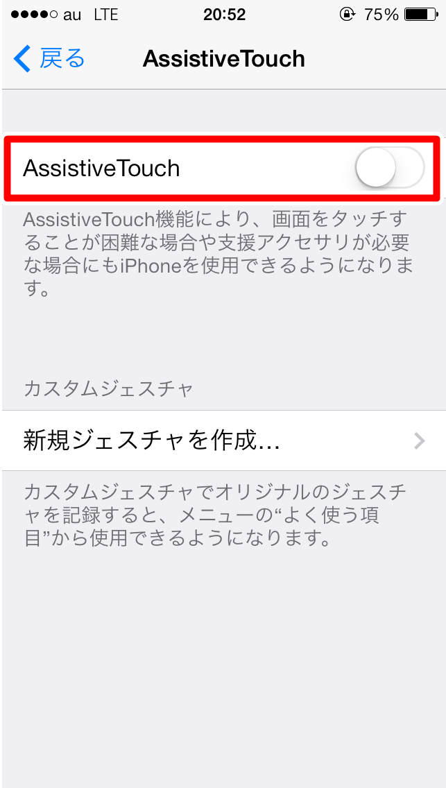 初期設定ではAssistive Touchがオフになっています。