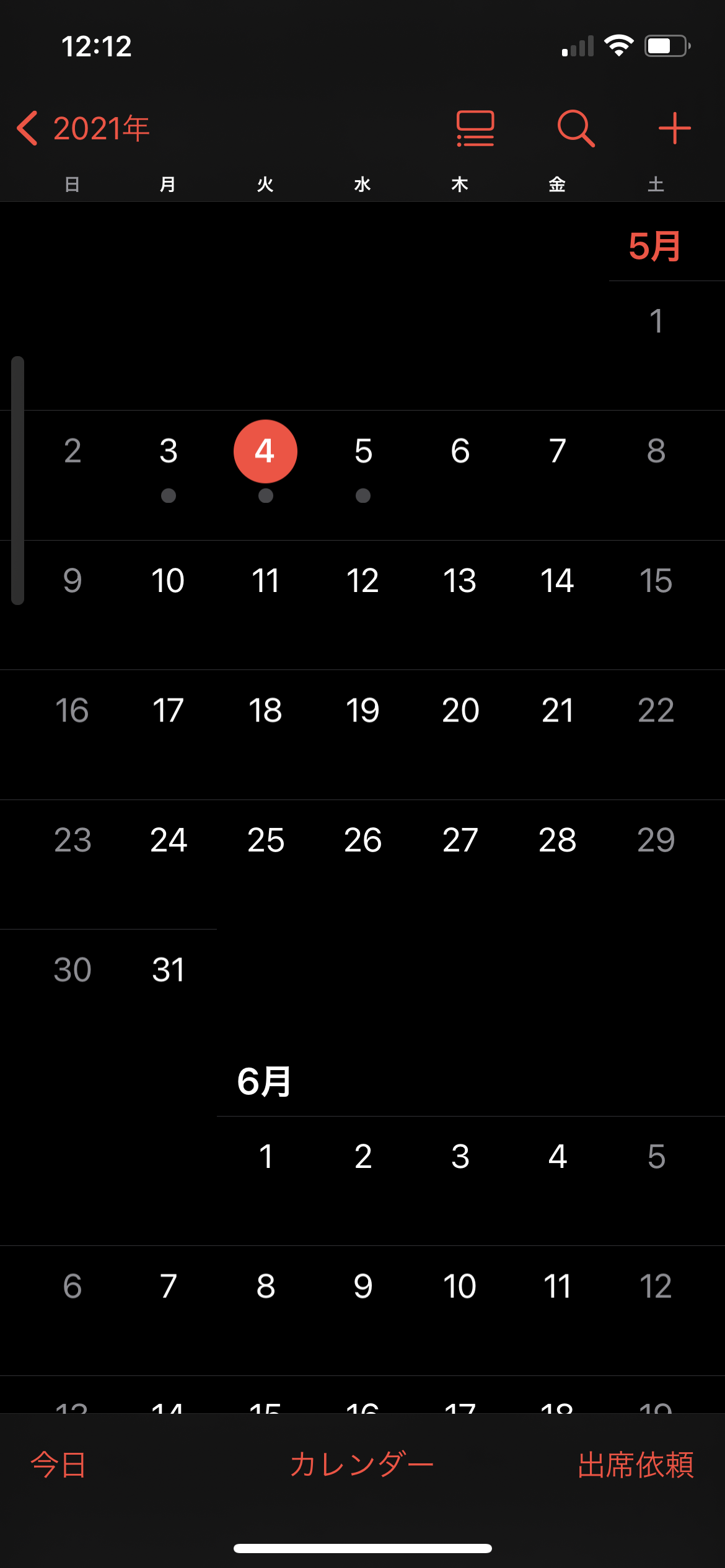 ②カレンダーをタップする