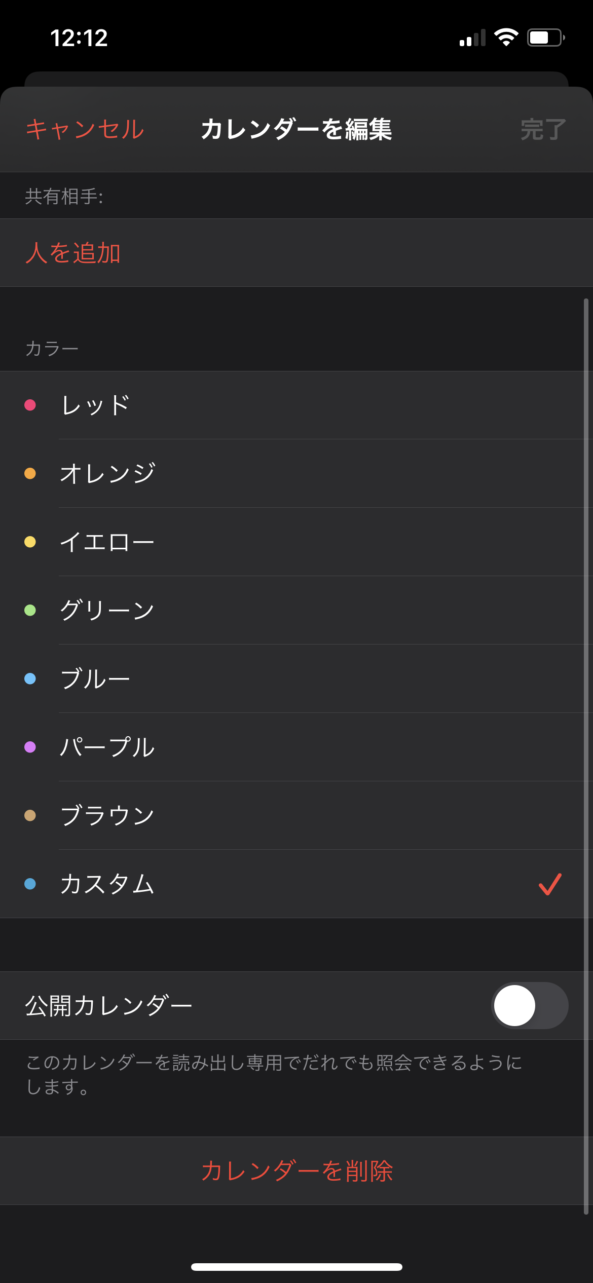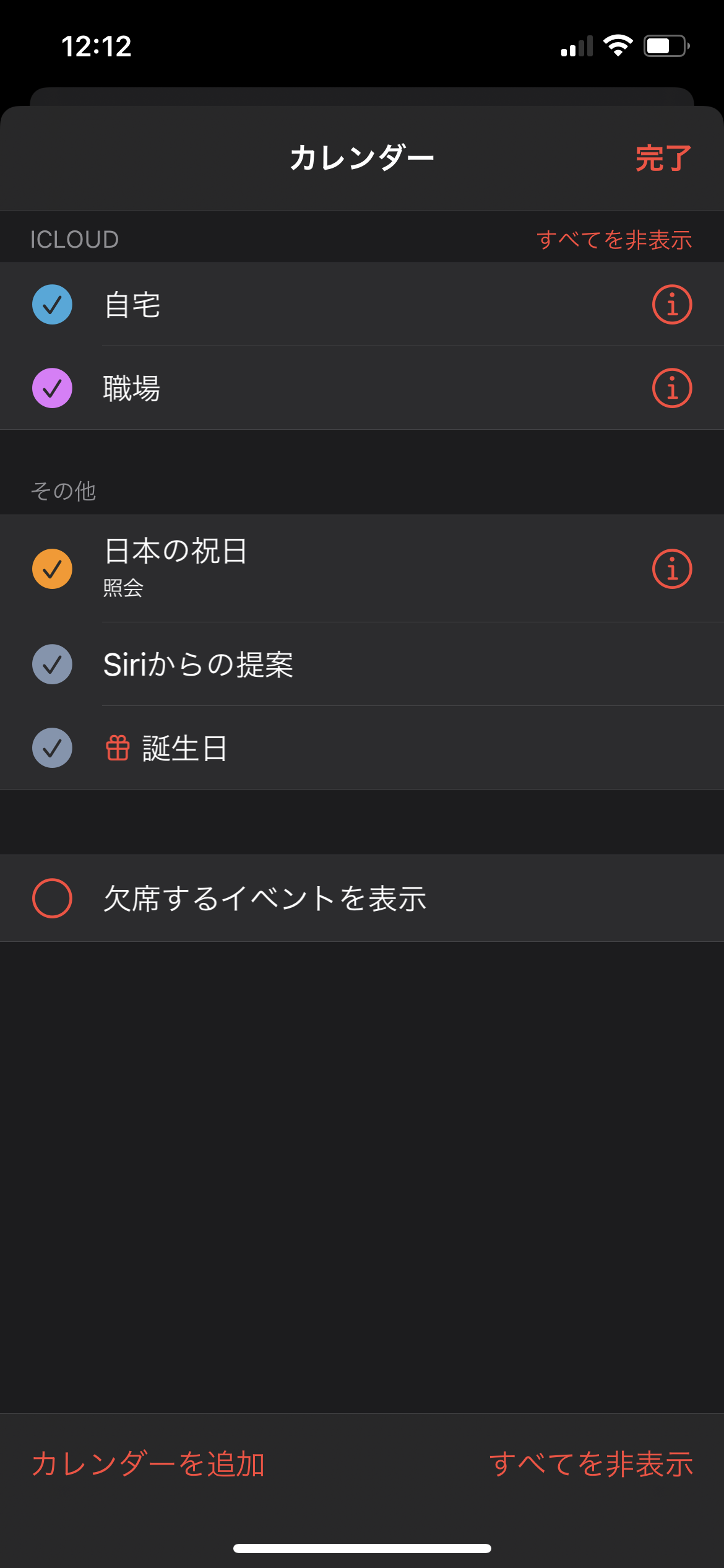 ③削除するカレンダーの横にある「i」をタップする