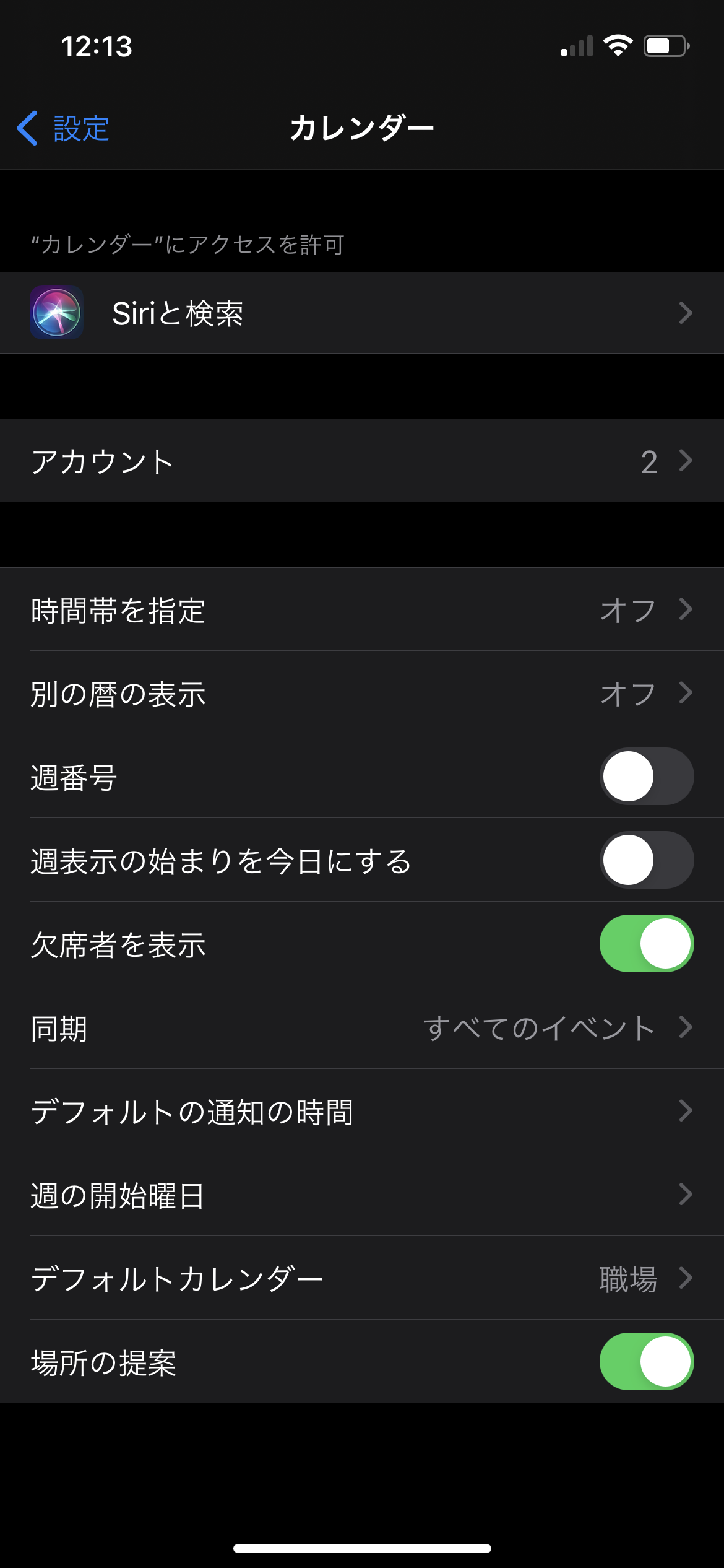 (1)設定アプリからカレンダーに入っているアカウントを削除する方法