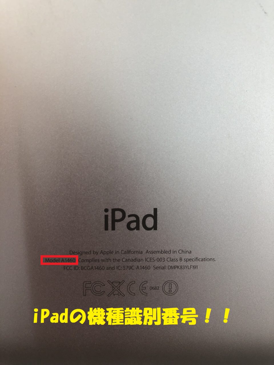 iPad本体背面の識別番号が機種確認の際に最も有効です!