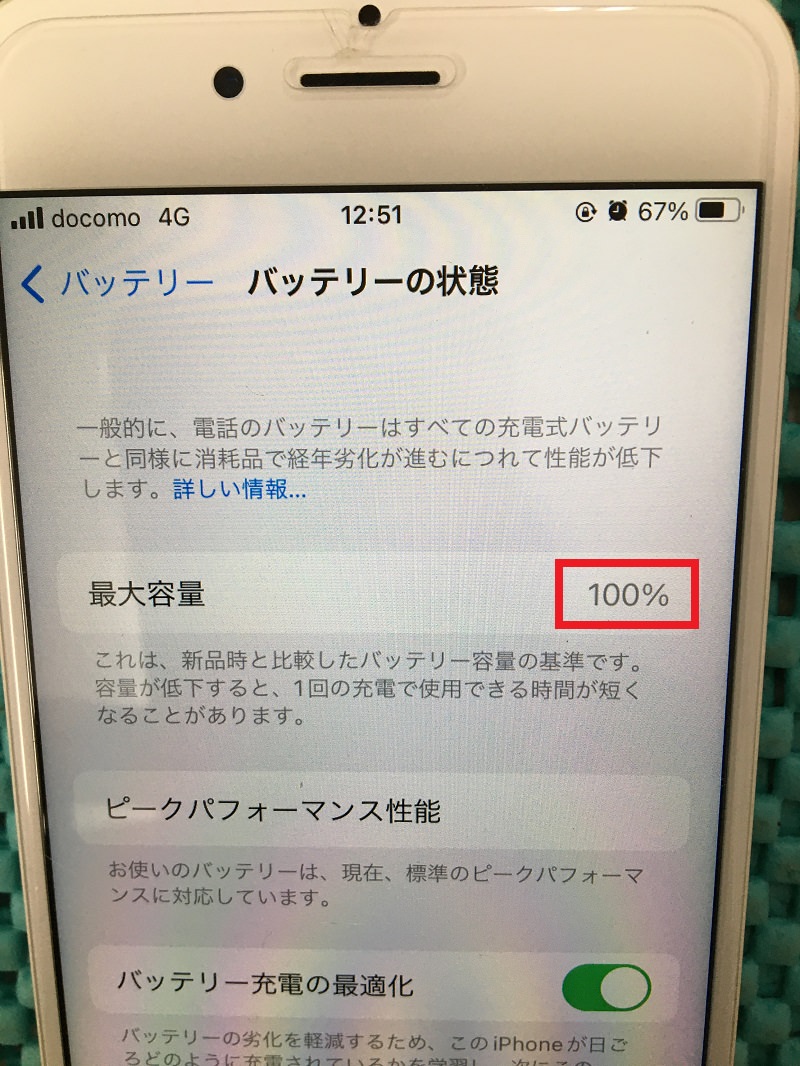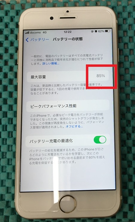 交換前の最大容量は85%と表示されておりました。