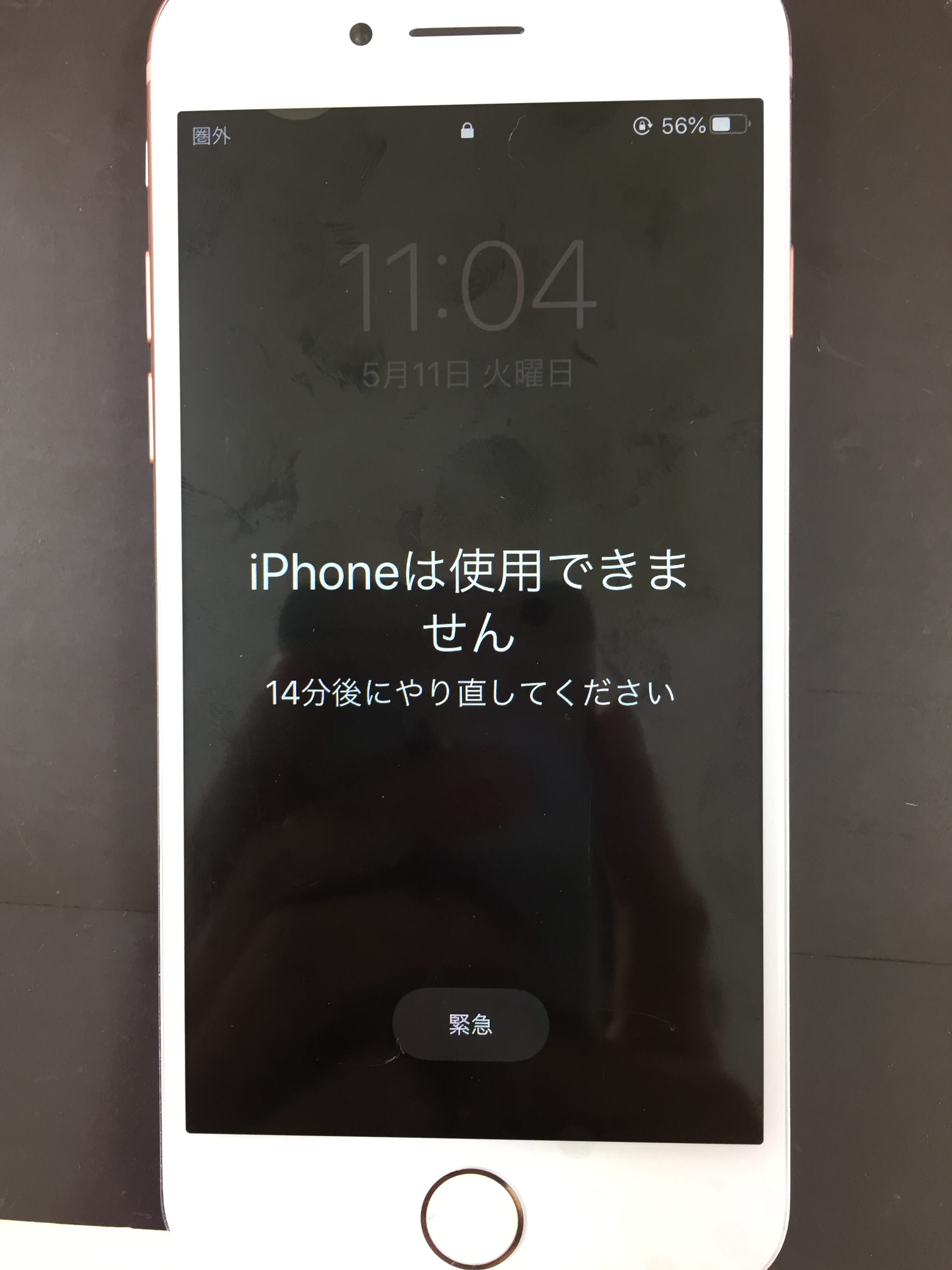 画面が故障していたら、タッチも効かないのかというと、そうとも限らない場合があります。なんとか動かせないか?水没したから電源切らなきゃ!という感じで画面を触ったり、タップしてみたりすることもあるかもしれません。しかし、表示されていないけれど内部的には「パスコード入力画面」になっている可能性があります。そのままタップし続けたら…iPhoneがロックされ、最悪の場合端末データをすべて削除しなければ使えなくなってしまうこともあります。