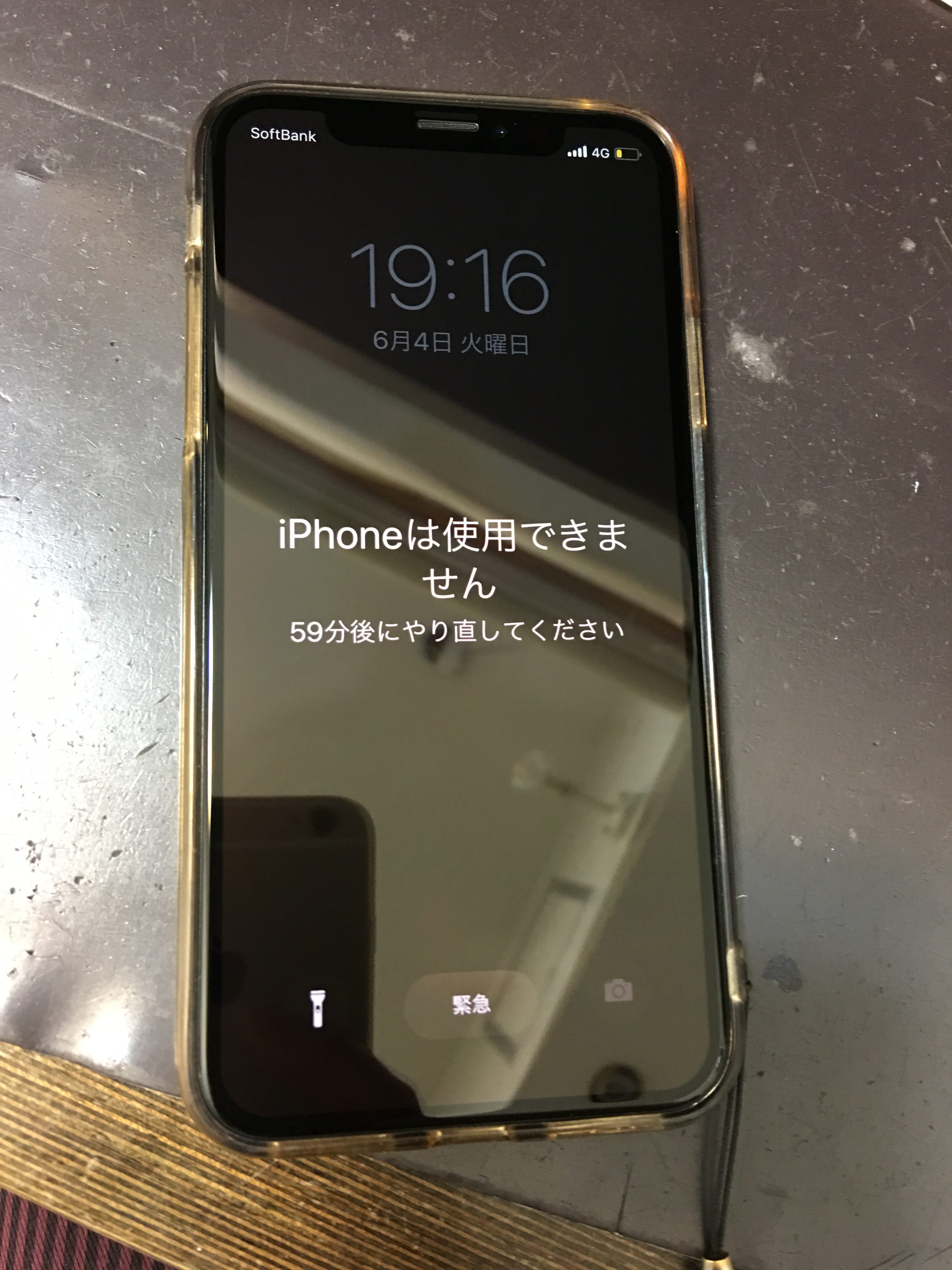 「iPhoneは使用できません。1時間後にやり直してください」という表示でした。