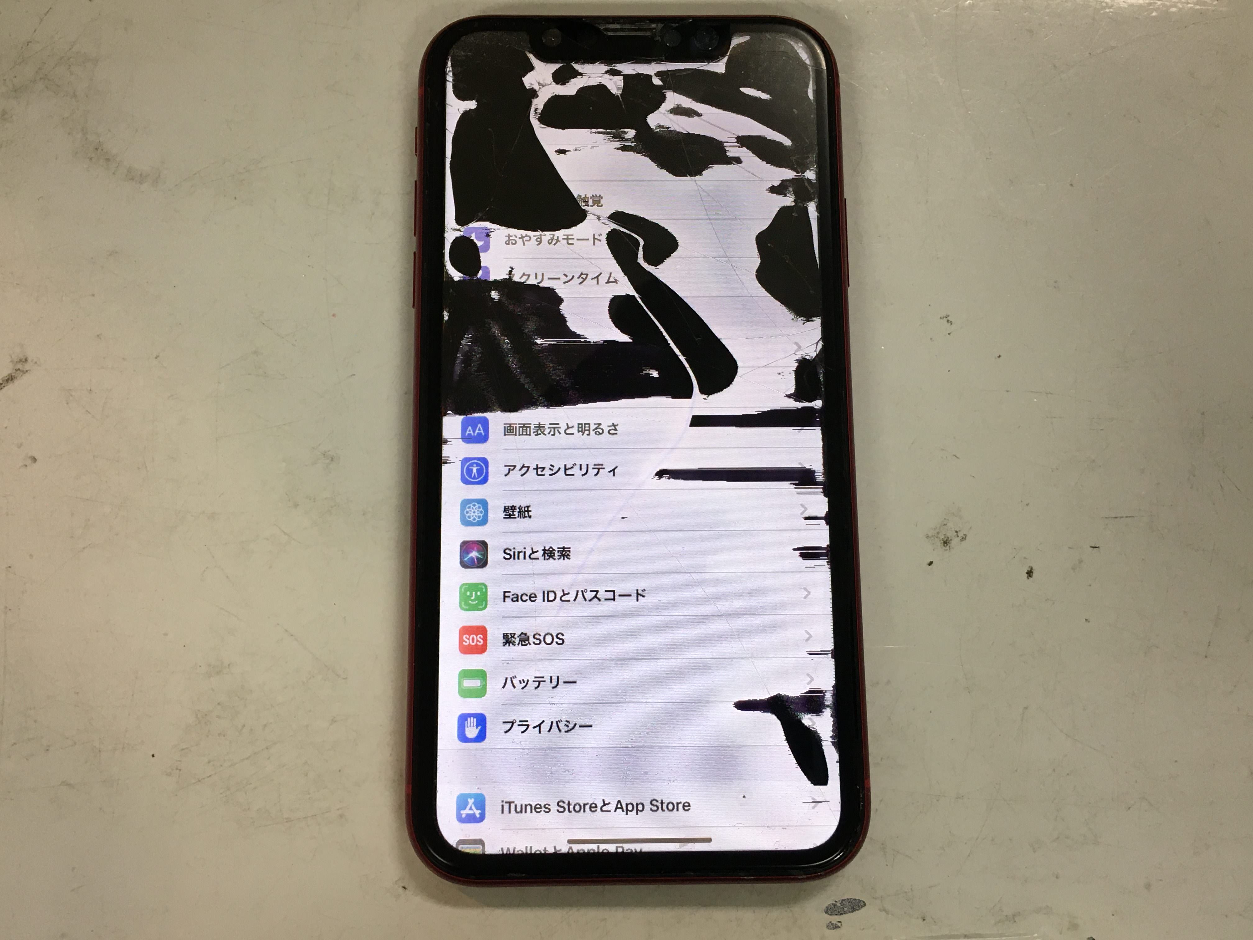 画面バキバキ、黒い液晶漏れのiPhone11が