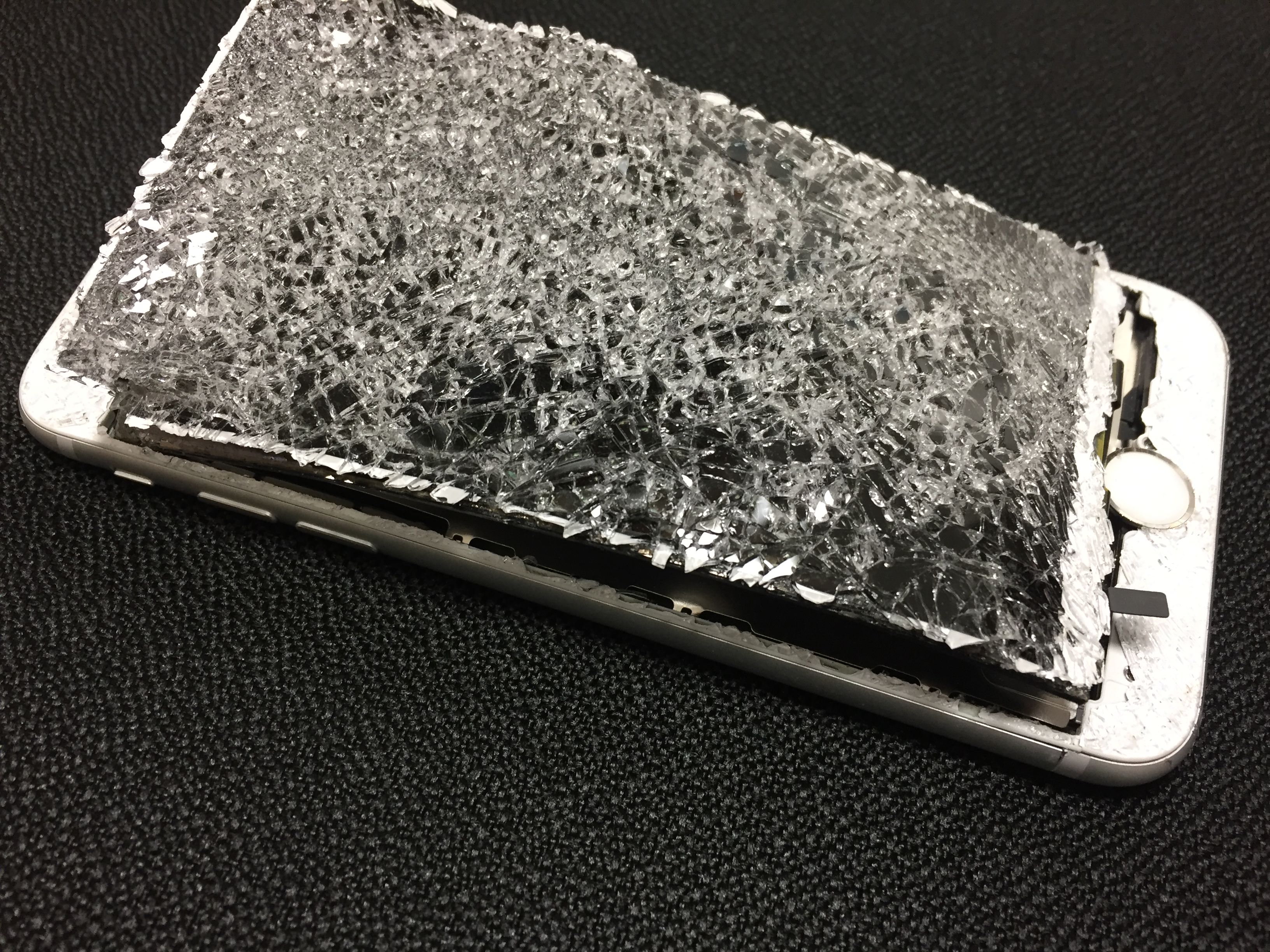 くるまに轢かれてこんな風にバキバキになってしまったアイフォーンからでも
