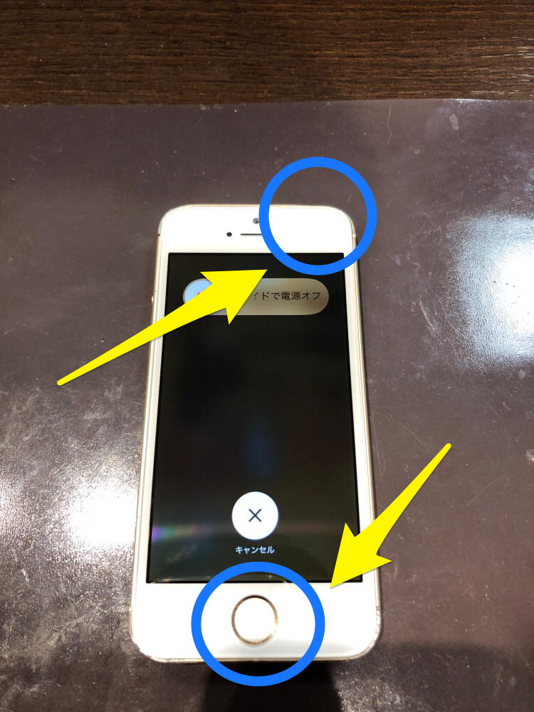 ①ホームボタンと電源ボタンの長押し