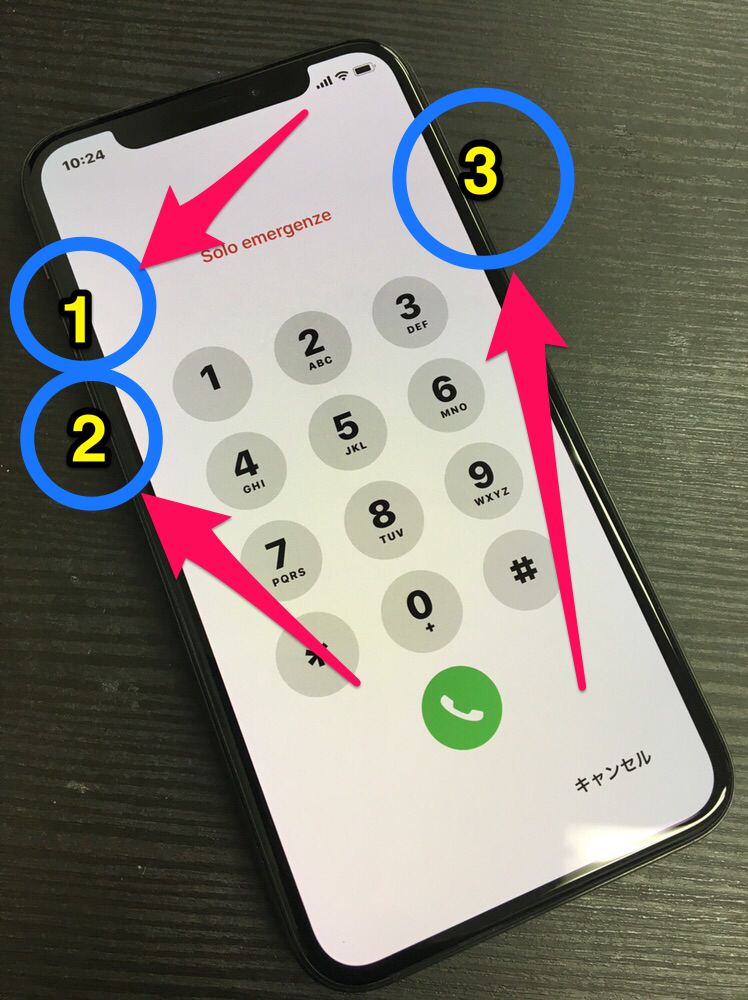 ②ボリュームダウンボタンを押して、すぐ離す