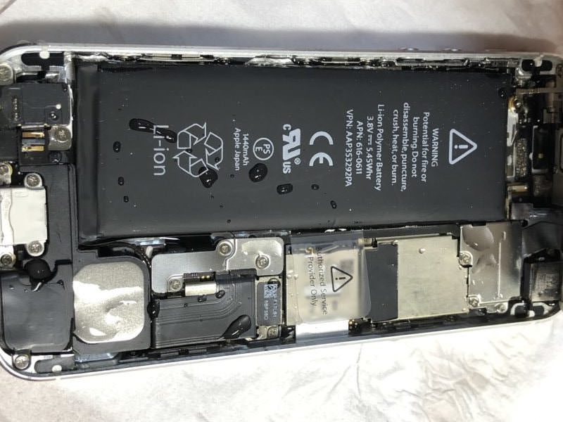 昨日お風呂に落としてしまって・・・といって修理屋に持ってこられるiPhoneは開けるとだいたい8~9割はこんな感じになっている!