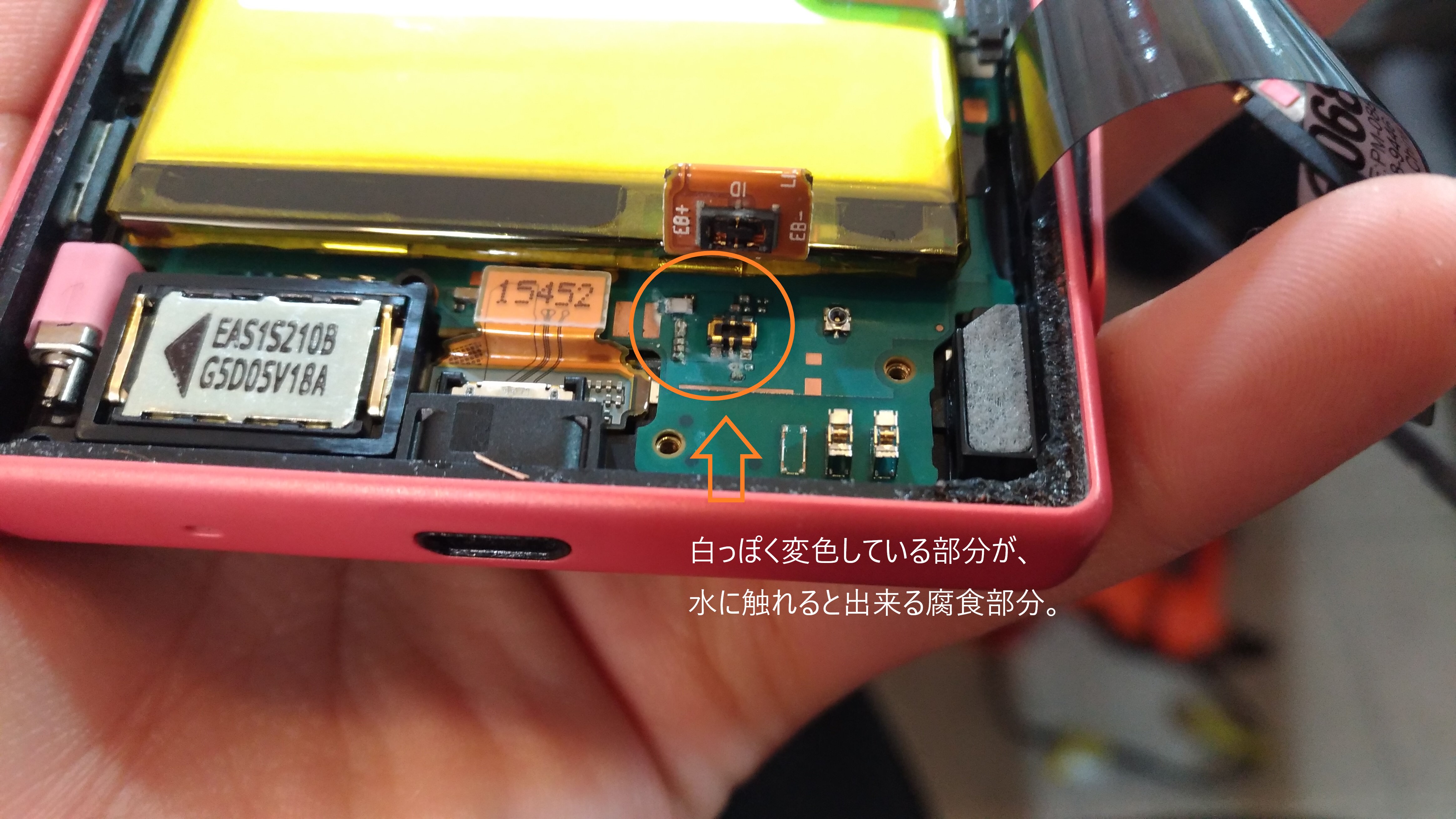 例えばこちらのXperia、compactシリーズの内部です。