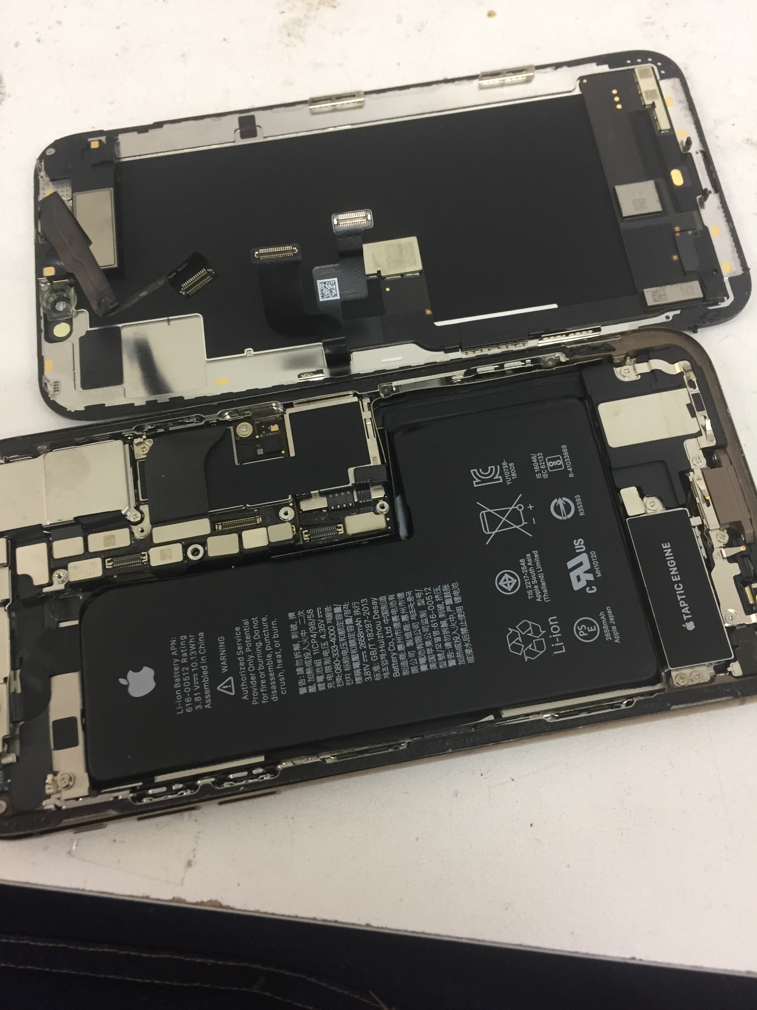 突然FaceIDが機能しなくなった、画面内部にモヤ、白い点、影がある、突然再起動を繰り返すようになった、部分的に発熱している、カメラレンズに水滴のようなものがある