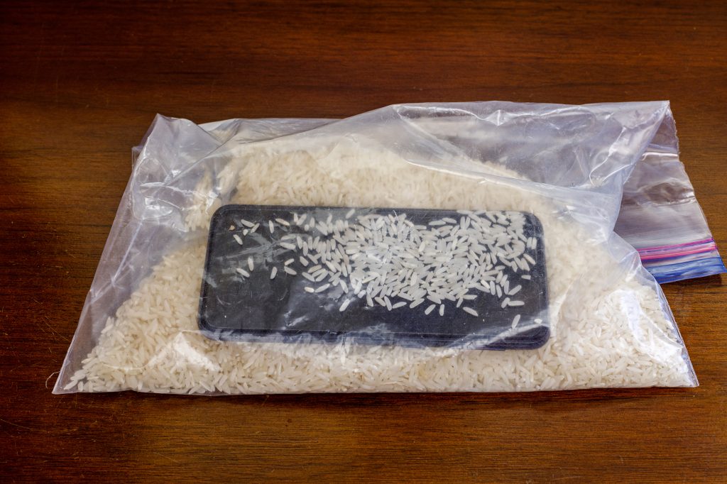 また、「水没したiPhoneは米びつに入れることで直る」という噂が過去にありましたが、根拠がないためやるべきではないでしょう。実際にお米に水分を吸収させて乾かすのは時間がかかります。一晩乾燥させた程度では内部の水分は取り切れません。乾燥させる間にiPhone内部のパーツが錆びてしまい状態が悪化してしまうケースもあります。