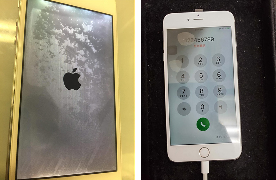 具体的には、液晶画面の内部にまで水が浸透し、白く変色してしまっている状態になります。この症状は内部の水さえ乾けば消えていくので、比較的軽微な症状と言えます。