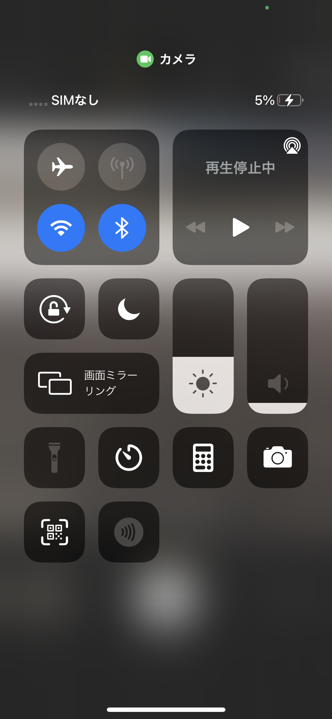 ※カメラを起動してコントロールセンターを出したのでカメラと表示されてます