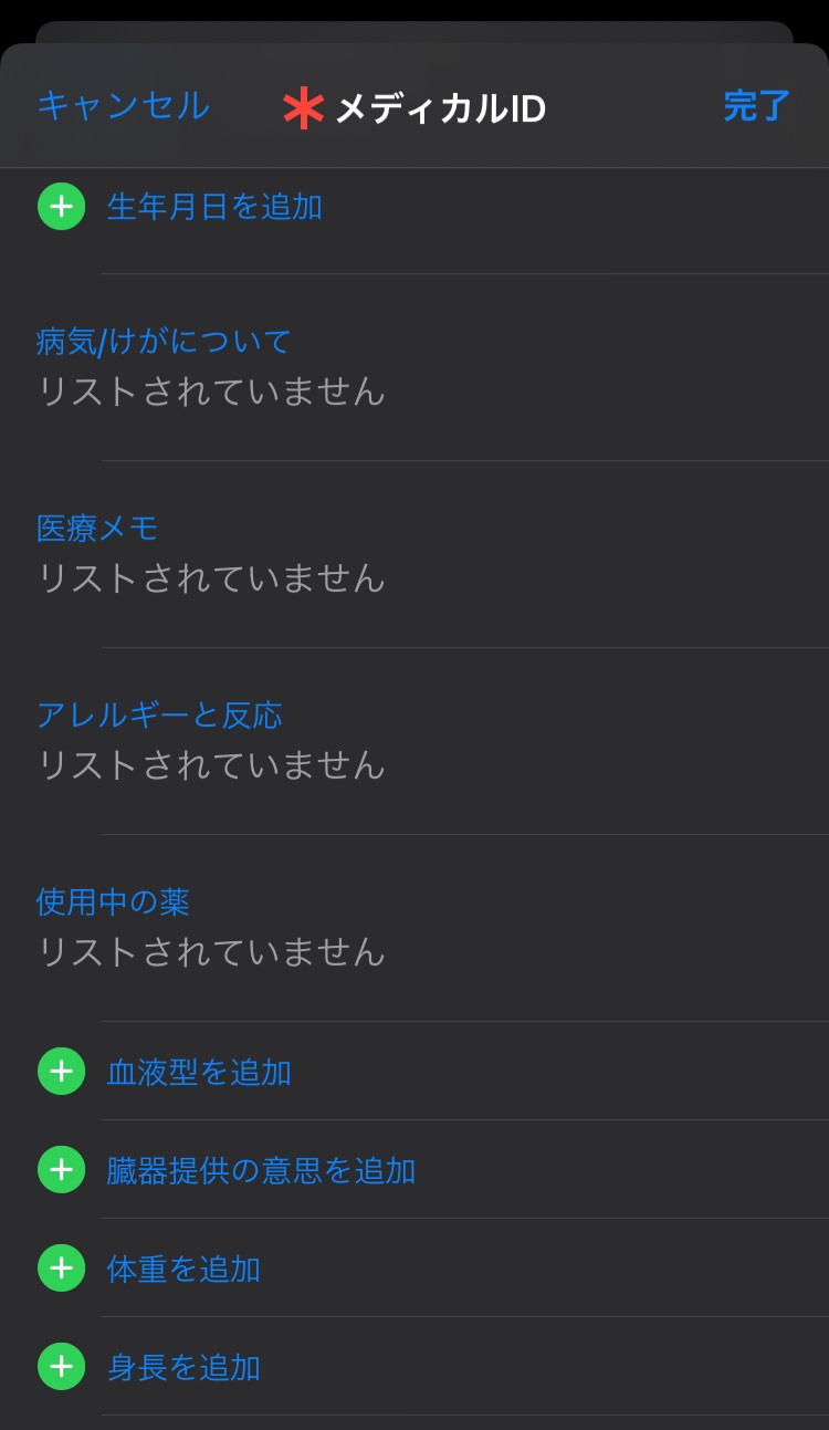 急な事故に巻き込まれて、または災害にあって大けがをしたり、意識を失ったりした際に医療関係者が治療の際の判断材料としてメディカルIDと呼ばれるものがあります。持病やアレルギー、血液型などが瞬時に分かればその分早い手当を受けることができる可能性が上がります。こちらはあまりあってほしくはないものの、もしもの時に役に立つ場合があるため、健康に興味がない方でも一度設定を試みて頂くことをお勧めします。