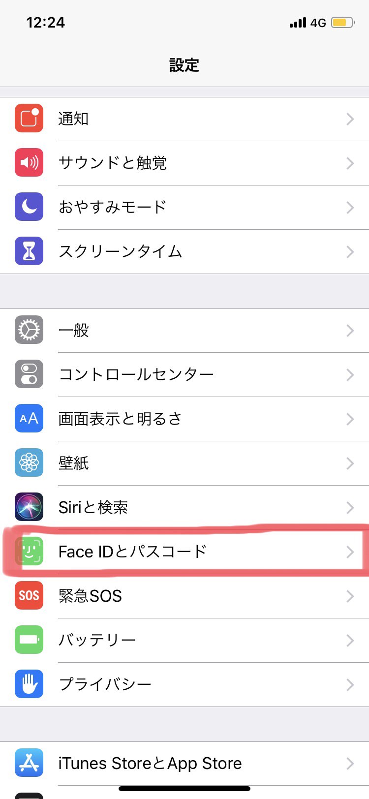iPhoneXシリーズの方は「FaceIDとパスコード」を、