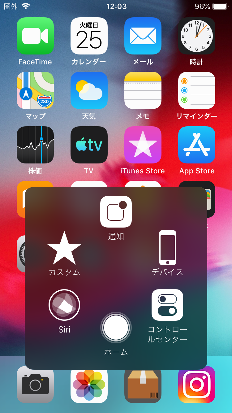 応急処置…アシスティブタッチ(Assistive Touch)の使用