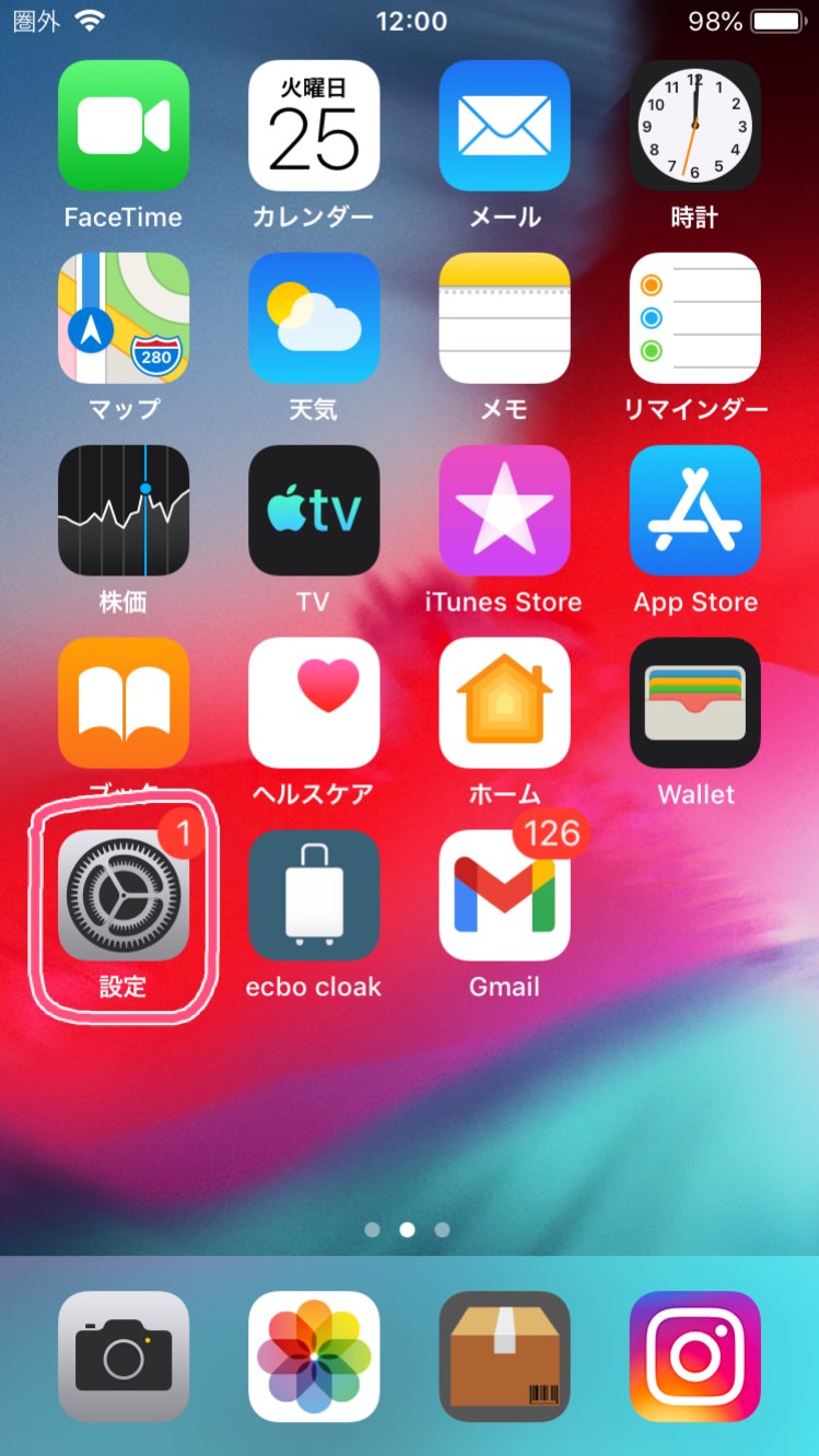 歯車マークの「設定」をタップ