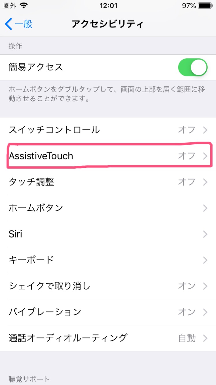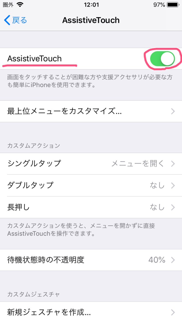 「Assistive Touch 」をオンにします