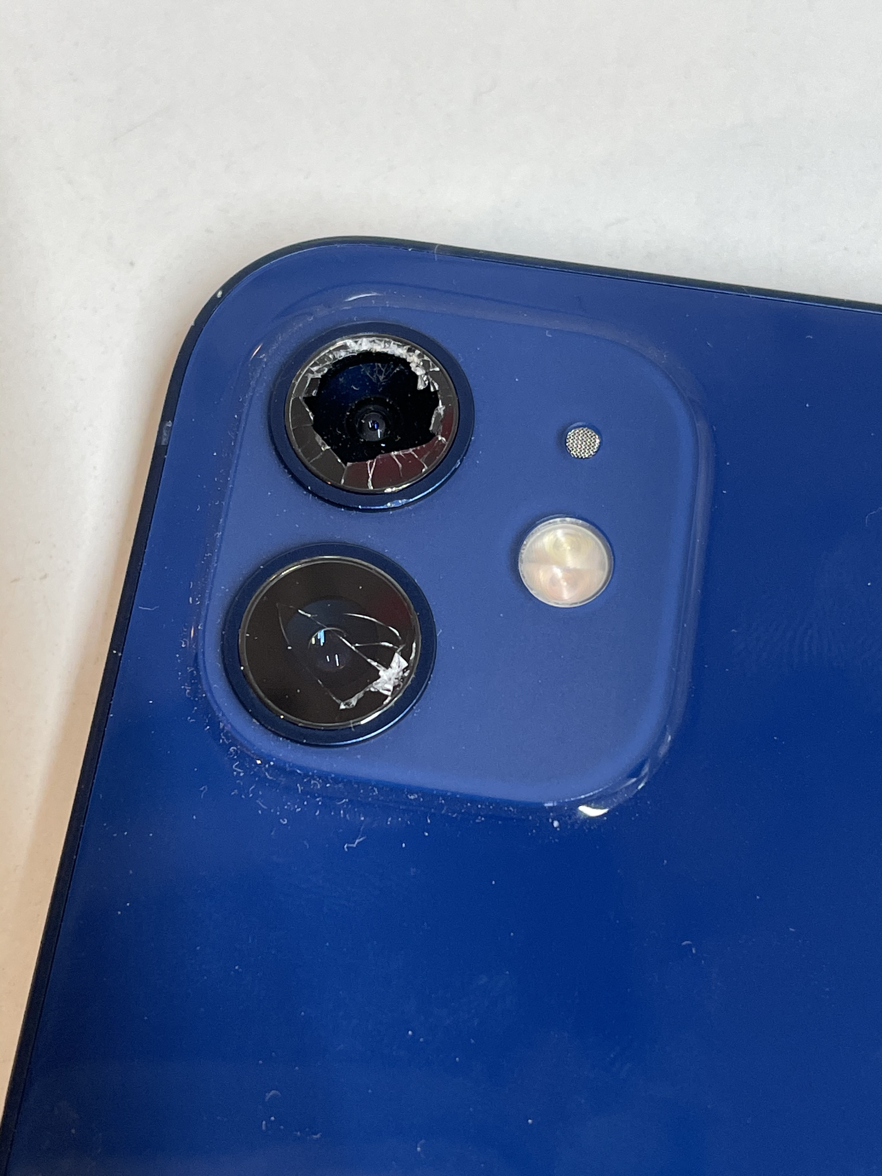 ※画像は、iPhone11Proの画面割れパネル、iPhone12のカメラレンズ割れ