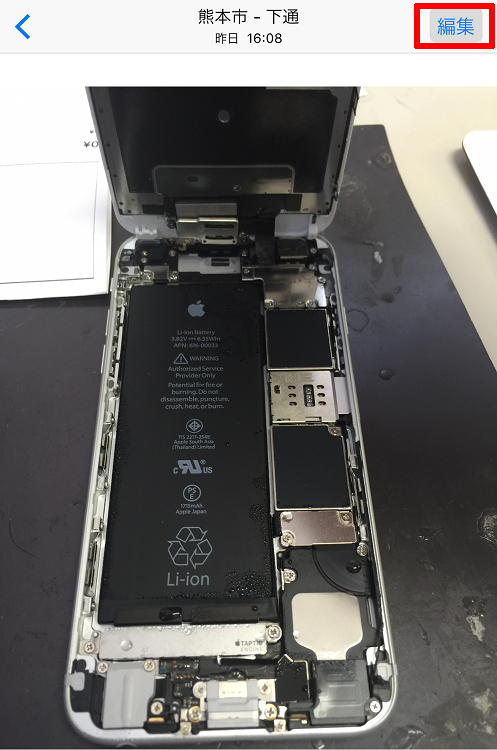 「写真」アプリで画像をひらき編集をタップします。