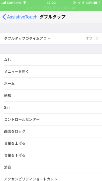 次にカスタムアクション内の「ダブルタップ」とか「長押し」あたりを選択して「消音」を割り当てる。