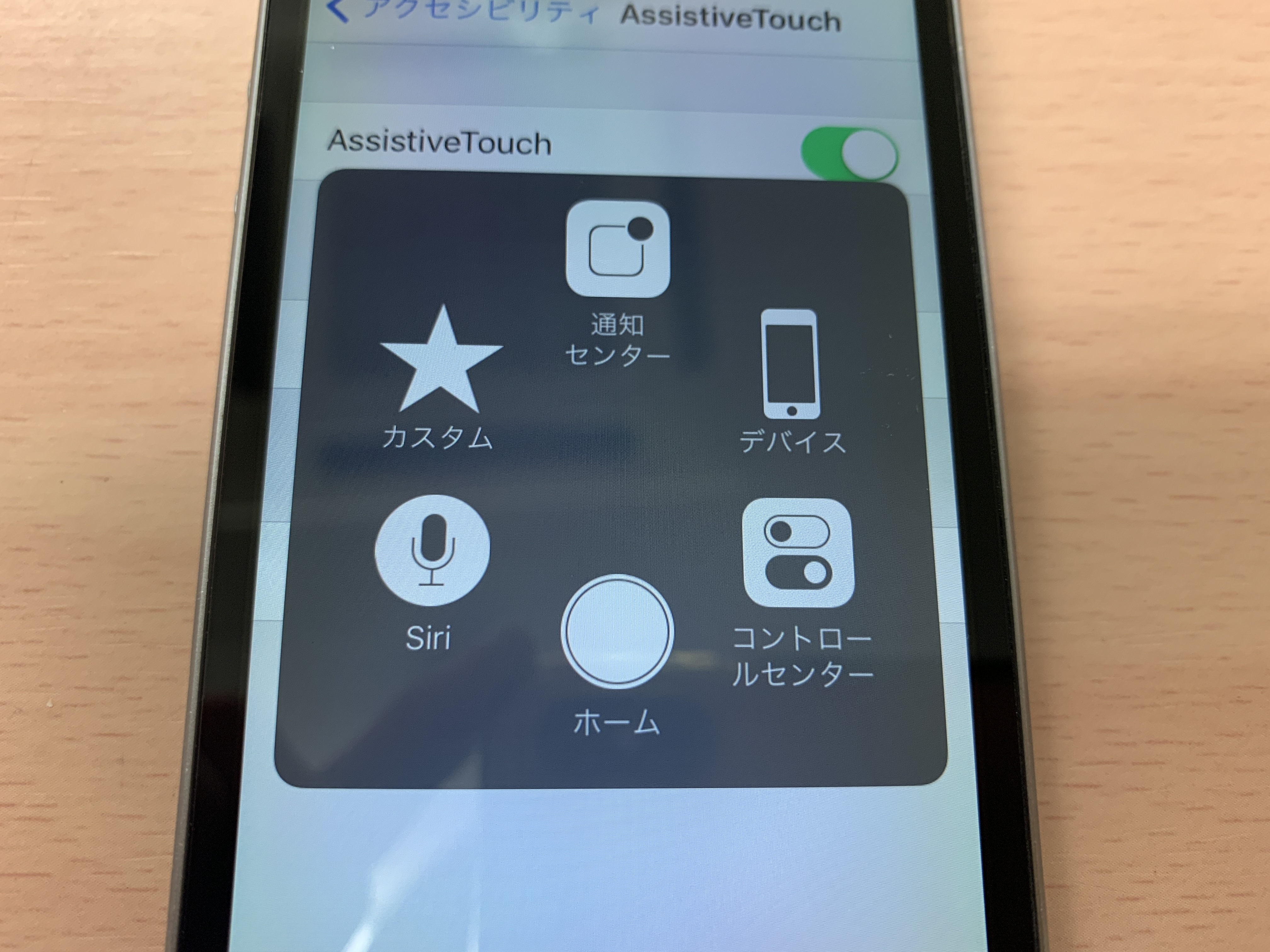 「ホーム」「Siri」「カスタム」と6つ項目が現れます。