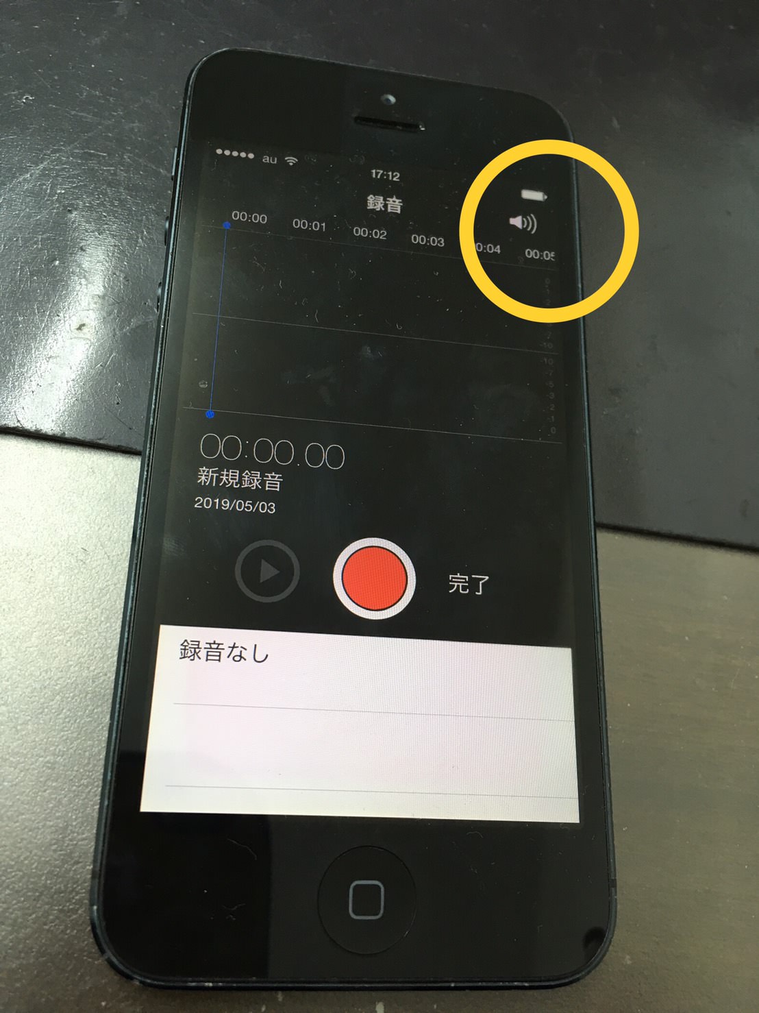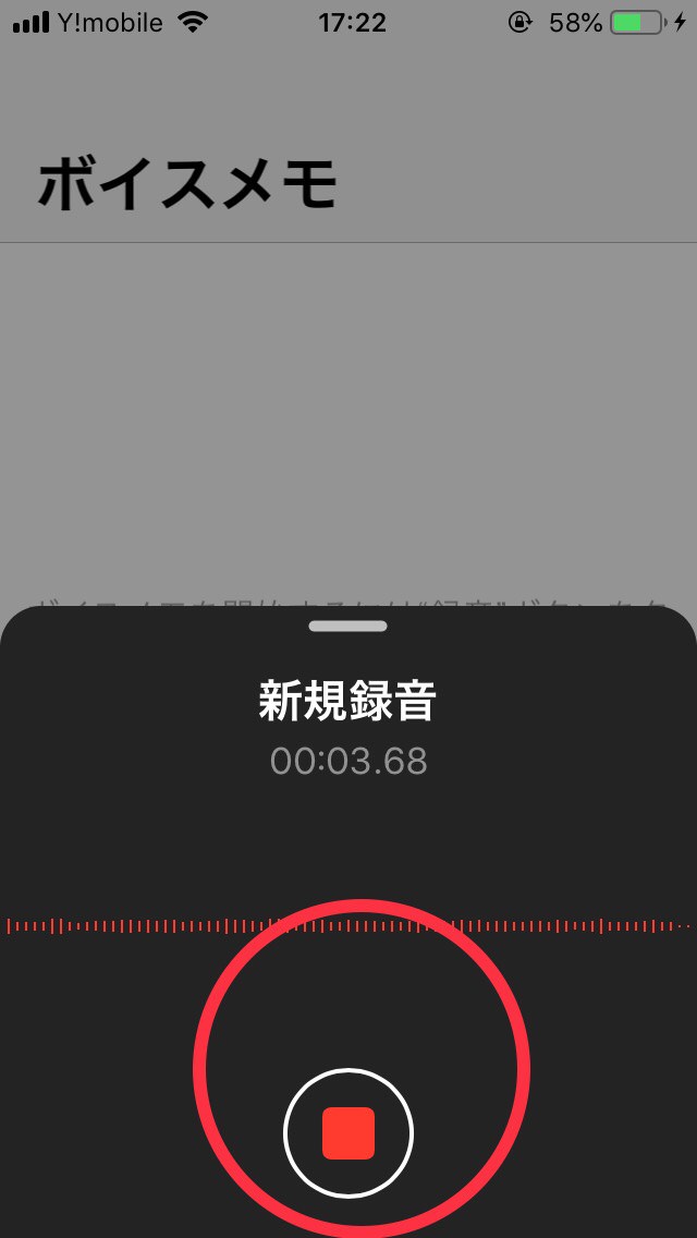 ボイスメモアプリで録音中の画面で液晶上部分に手をかざします。