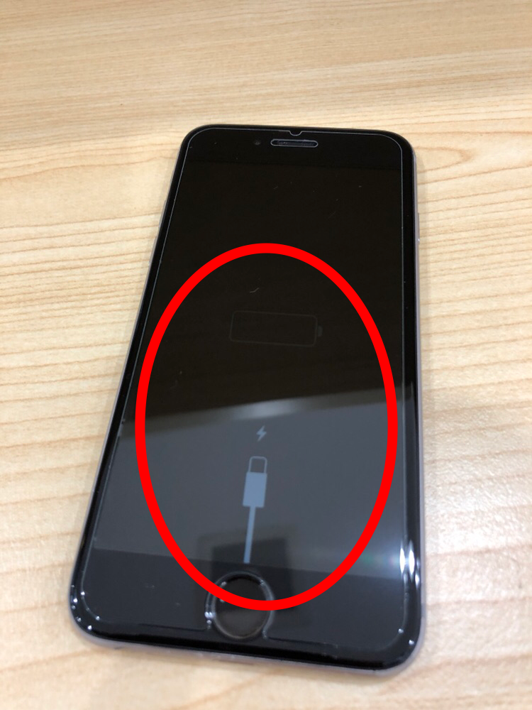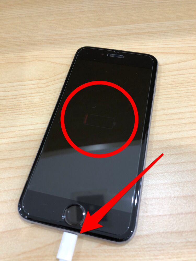 バッテリーの残量が残っていない状態でiPhoneを起動させようとすると、画面にバッテリー残量が残っていないことを意味する表示になります。