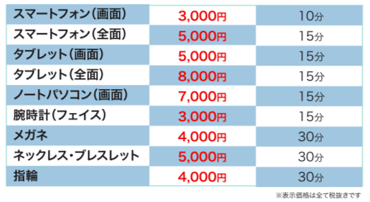 スマホ以外にもノートパソコンや時計、メガネなどなどにもできますよ。
