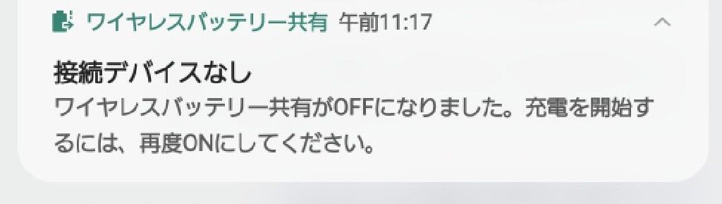 さあ、設定をONにしてワイヤレス充電対応のスマホを近づけるとこの様な表示が!
