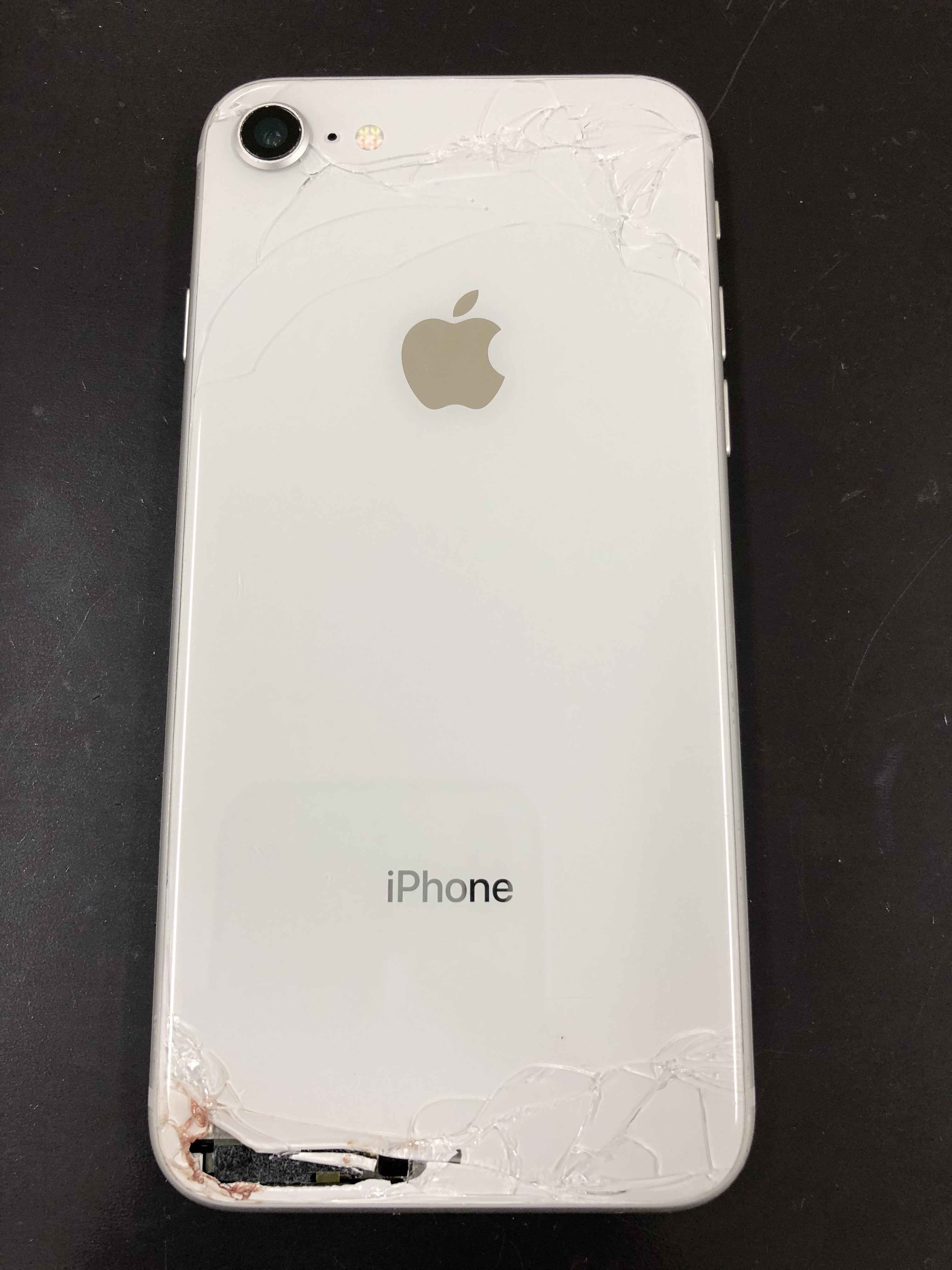 iPhone8の背面はガラス製で割れると左のように中が見えることも・・・