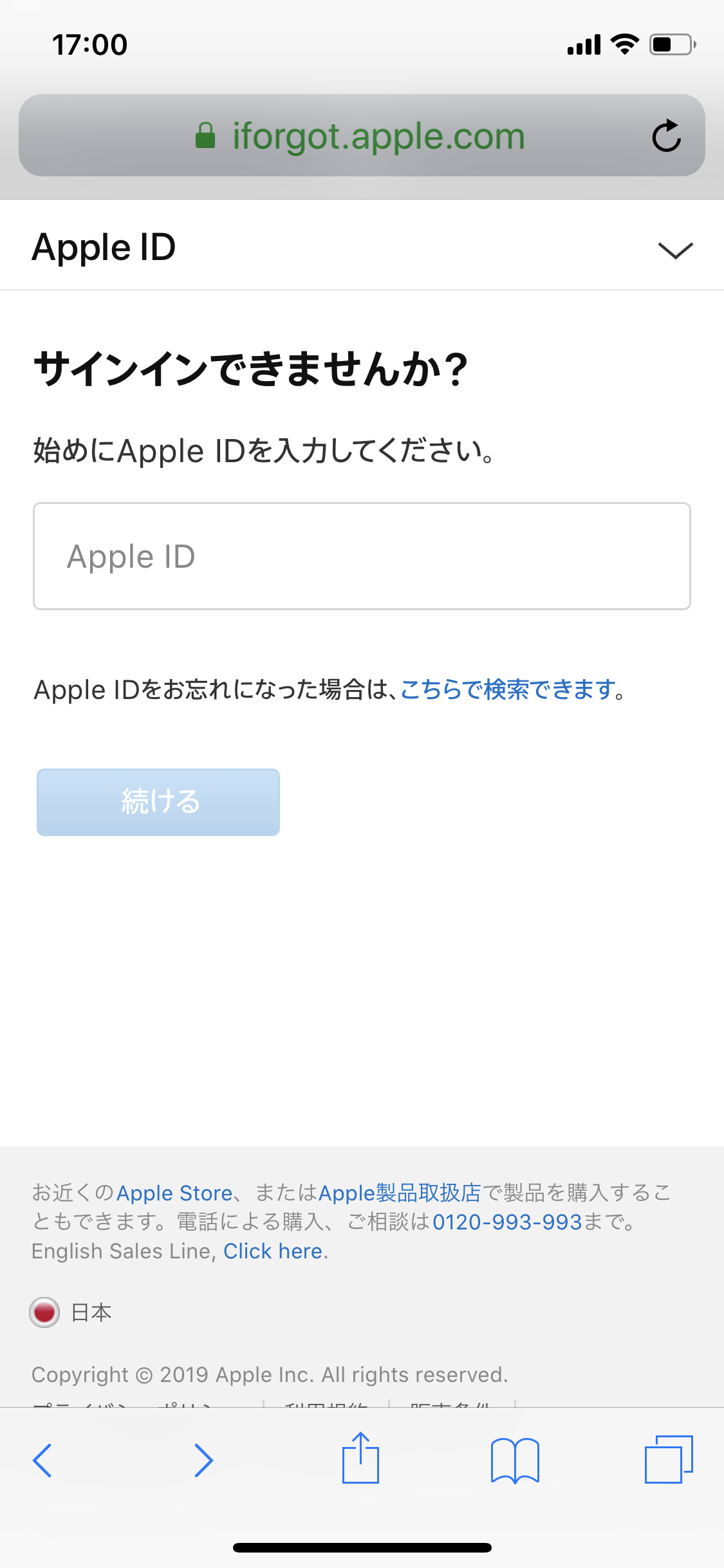 検索結果に「iForgot-APPLE」というバナーが一番上に出てくると思いますのでそれをタップしてページを開きます。