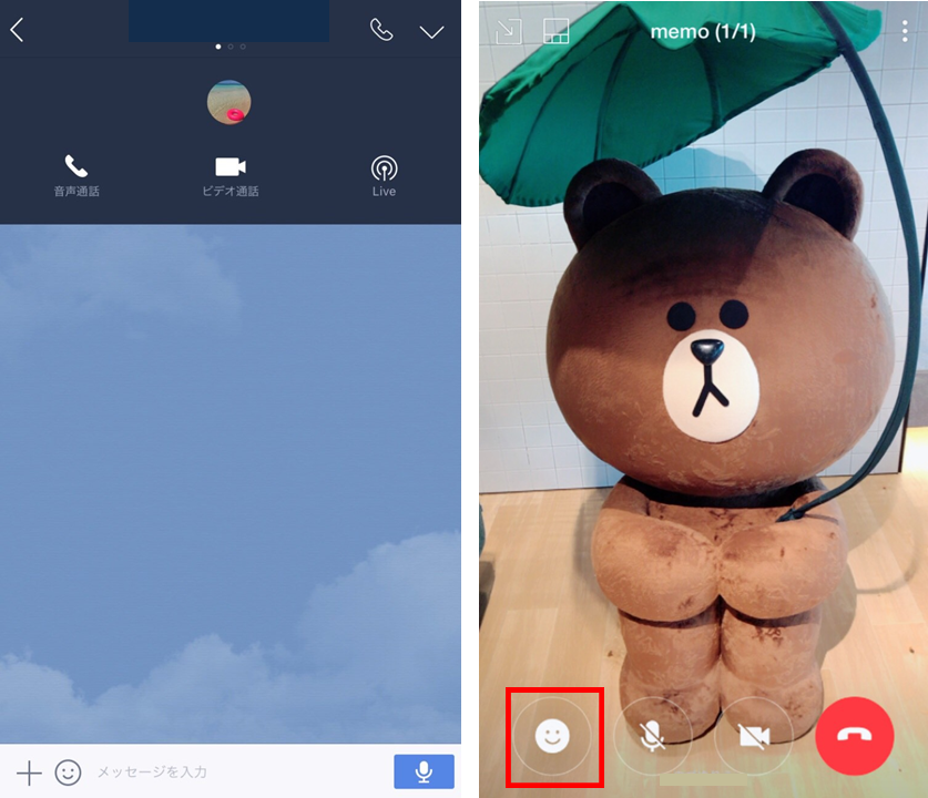 ビデオ通話中に画面下に出る顔マークをタップすると使えます(*´ω`*)