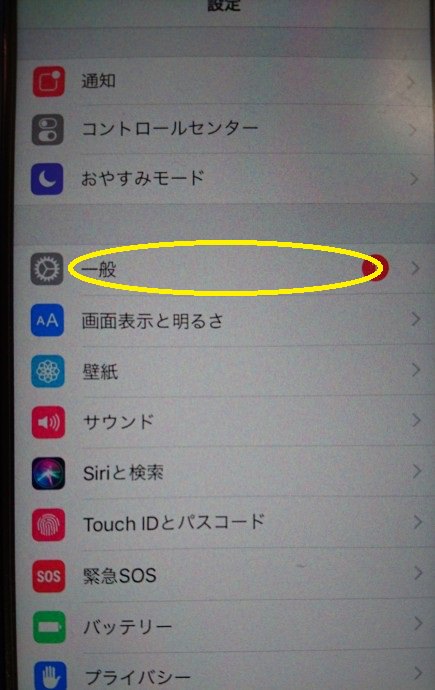 ①設定画面を開いて「一般」の項目を開きます。