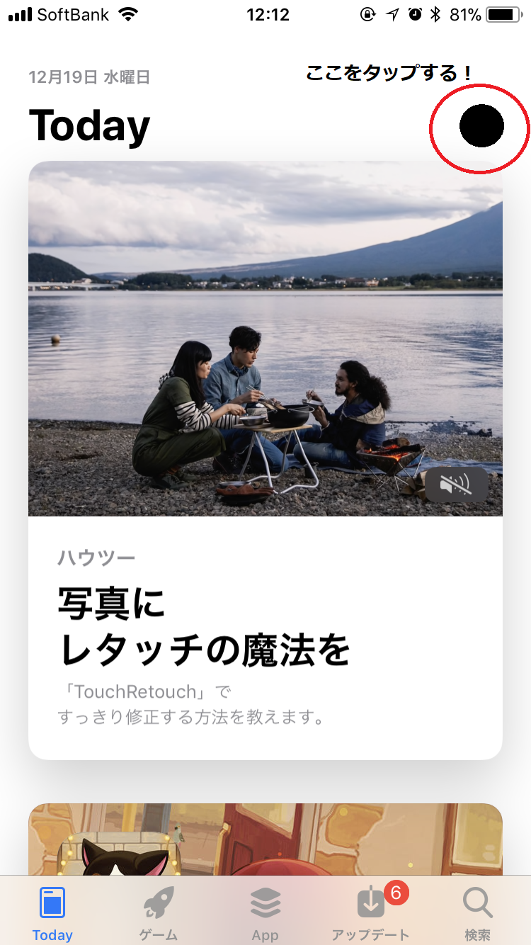 そこをタップする!赤丸のところ!