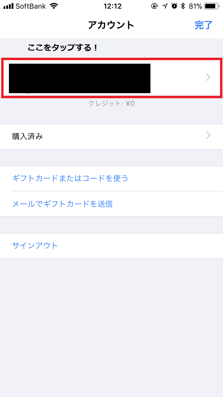 そうするとメニューが開くから次に自分のAppleID(メールアドレス)の部分をタップする!